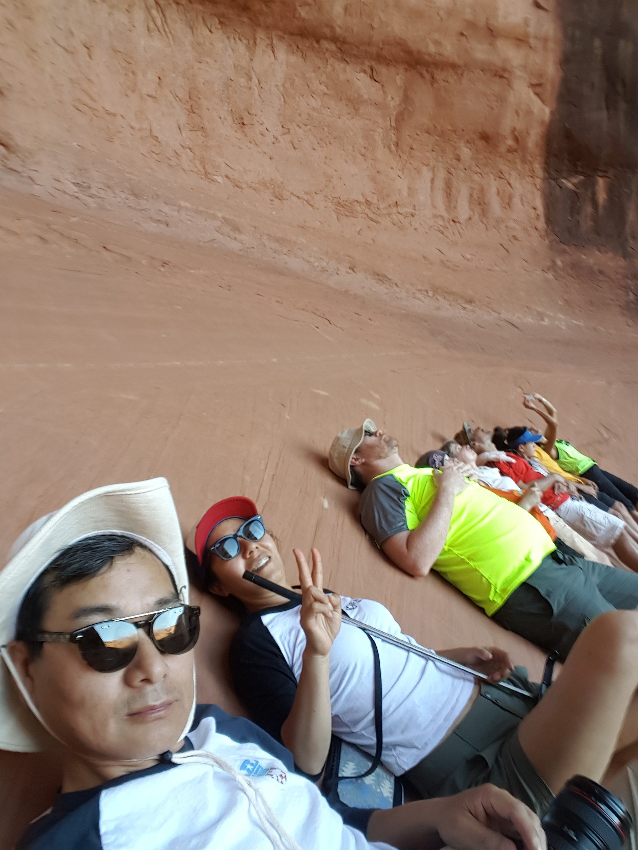 우리는 공원을 나와서 그리 멀지 않은 Goulding's lodge의 캠프그라운드에서 캠핑을 했다. lodge건물과 campground는 떨어져 있었다. 이곳은 뮤지엄도 있는데 실제로 존 웨인이 나온 서부영화를 찍기도 했다고 한다. 캠프그라운드로 들어가는 길엔 제법 큰 마트도 있었고 주유소도 있었다. 캠프장은 많은 캠퍼들이 있었음에도 불구하고 조용했다. 여기저기 저녁을 준비하고 바베큐를 굽는 연기들이 보였다. 하늘로 올라가는 연기들 사이로 수 많은 별들이 절벽들 사이로 가득 차 있었다. 더운 날씨에 지친 몸과 마음이 풀린다. 캠핑카의 모든 불을 소등을 하고 캠핑체어에 가만히 앉아 이 모든 것에 감사해 하며 하루를 마무리 했다.