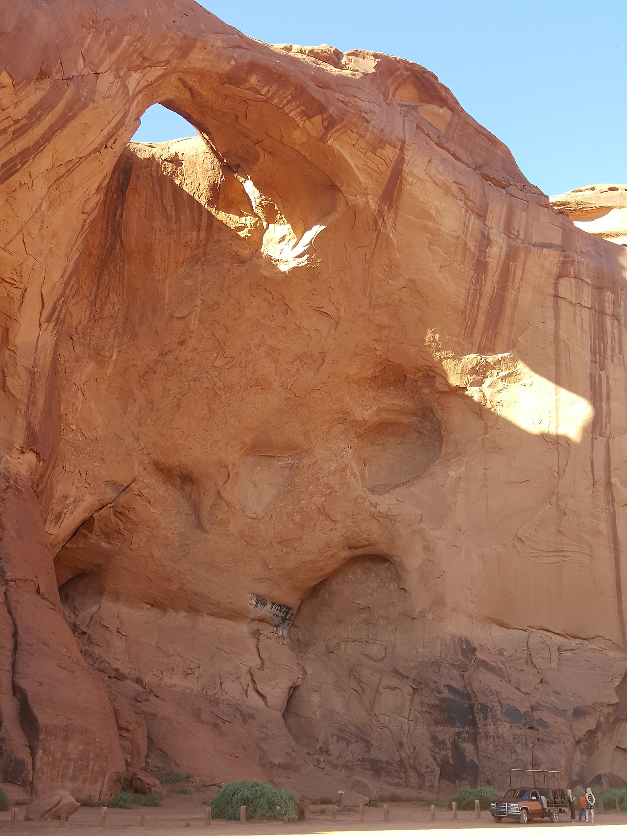예약한 시간이 되어서 주차장으로 가니 우리가 예약한 Navajo spirit tours의 오래 된 트럭이 보였다. 트립어드바이저에서 제일 추천이 많은 투어 회사였기 때문에 예약했는데 그 주변에 보이던 simpson's tour 의 새 트럭들이 연일 손님을 태워 가는 것을 보고 살짝 후회가 되기도 했다. 나중에 simpson tour의 사이트르 보니 요즘 트렌드에 맞게 좀 더 다양한 투어들이 있긴 했다. Navajo spirit tours의 프로그램중 가장 일반적인 monument valley 투어는 우리 부부 말고도 4명의 가족그리고 3명의 또다른 가족 총 8명이였다. 투어는 17마일 중간 투어 없이는 갈 수 없는 곳들을 둘러보는 것이 였다. 길 가까운 곳으로 dry campsite들도 있었고 실제 인디언들이 사는 주거지들도 지나갔다. 촬영 장비들과 트럭들이 모여있는 곳을 지나갔는데 조쉬 하트넷이라는 배우가 출연하는 valley of the Gods을 찍고 있는 중이였다.