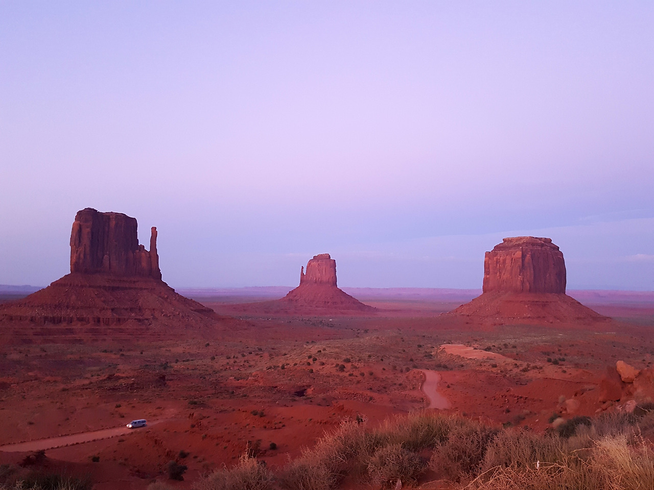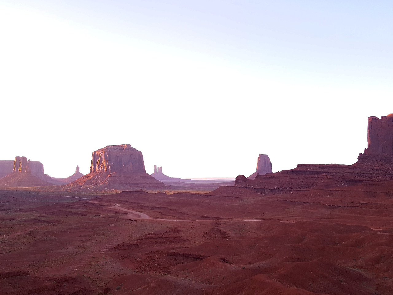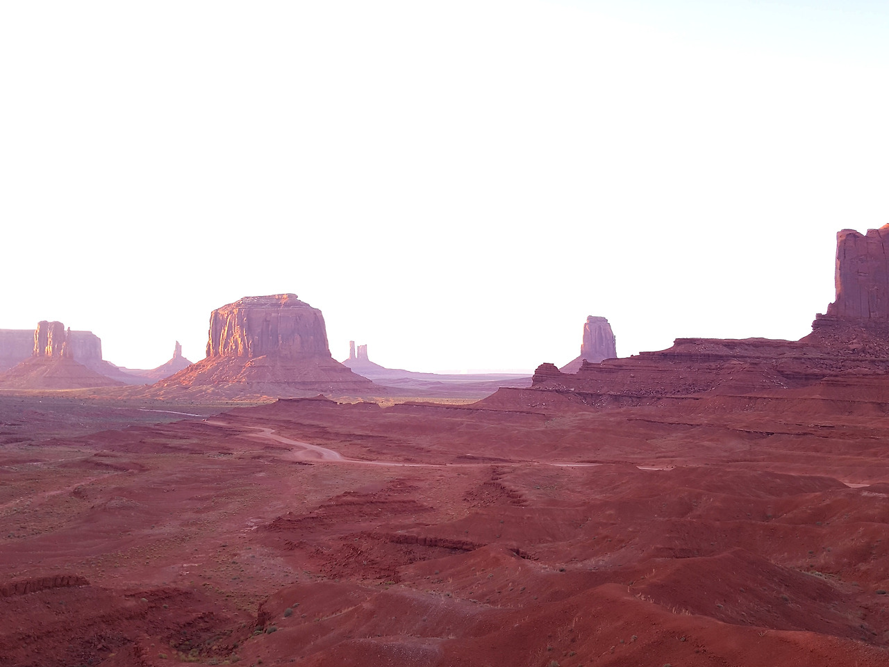 서부영화들의 배경이 되고 많은 사진가들이 찍은 제일 유명한 곳을 가장 나중에 들렸기 때문에 해가 거의 다 졌다. 절벽 위에 인디언이 말 위에 있는 사진이 유명해져서 인지 관광객들에게 돈을 받고 절벽에 말 위에 올라 관광객들의 사진 속 배경이 되어 주는 인디언 아저씨와 말도 이미 퇴근을 한 시간이였다. 쏟아 오른 다양한 절벽들 속에 비포장도로 말고는 인위적인 것이 보이지 않아서 마치 다른 세상이 들어 온 느낌이 들었다.