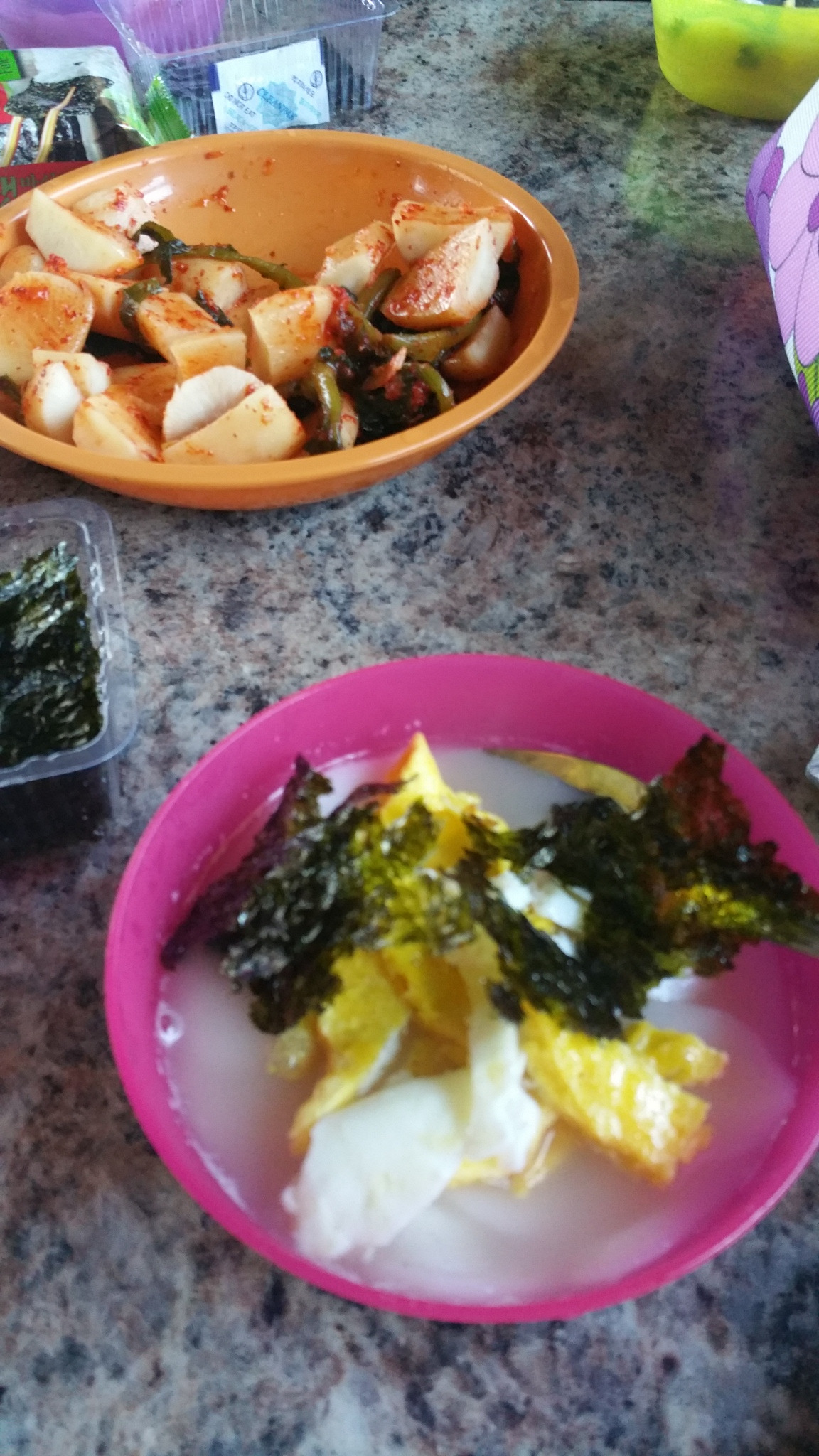 60번 프리웨이를 타고 15번 프리웨이를 타고 빅토빌이란 도시 초입에서 395번을 하염없이 타면서 북으로 올라간다. 정말 인구가 100명이 채 넘는 도시들도 지나가기도 한다. 빅토빌 초입에서 만났던 스타벅스나 맥도널드를 끝으로 그 흔한 프렌차이즈 레스토랑들을 더 이상 만날 수 없는 문명(?)이기와 단절 된 곳으로 3시간 반 이상을 달리고 산도 넘으며 넓은 평원을 달려 1월 1일 오후 2시 반을 살짝 넘어서야 우리의 베이스 캠프 Stovepipe wells 빌리지에 도착했다. 이곳에는 호텔뿐만 아니라 바, 식당, 제너럴 스토어, full hook up sites ( 캠핑카에 수도, 하수, 전기를 연결 할 수 있는 ) 그리고 dry sites ( 텐트나 캠핑카 둘 다 가능하지만 수도, 하수, 전기 시설을 연결이 없다) 있었다. 마지만 난코스인 경사가 9% 이상 되는 곳을 차로 오르고 내려와서 피로도가 너무 심했다. 호텔에서 14개의 풀 훅업 사이트 중 우리가 머무를 12번 사이트를 체크인 하고 ( 하루밤에 33불이다). 사이트로 가서 캠핑카를 셋업을 했다. 셋업 되자마자 나는 계란지단과 조미김 고명을 올린 풀*원 떡국으로 1월 1일 첫 캠프 식사로 시작했다. 식사를 하면서 캠핑카 창문으로 보이는 드넓은 각양각색의 흙빛 풍광에 들뜨기 시작했다.