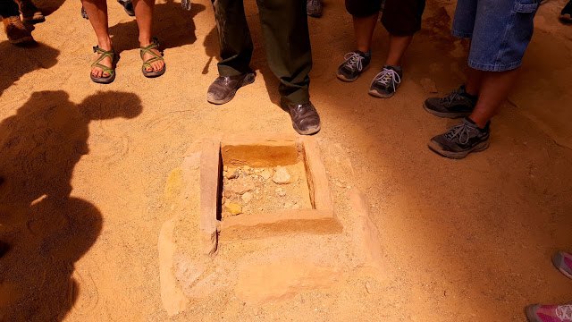 이것은 거주지이다. 위로 짚 같은 것으로 지붕으로 만들고 사다리를 통해 거주지로 내려가는 구조이다. 둥그렇게 파진 부분은 불을 피우기 위한 것이고 그 뒤로 벽처럼 세워진 것은 바로 환기와 굴뚝 역할을 위한 구멍에서 나오는 바람이 불을 꺼뜨리는 것을 방지 하기 위한 것이다.