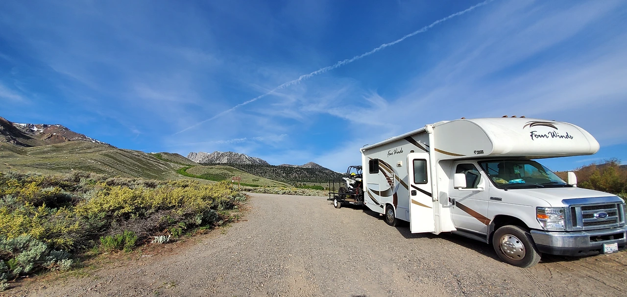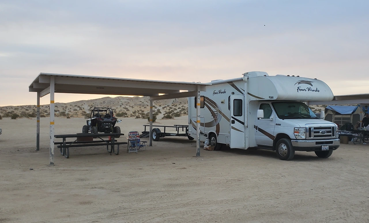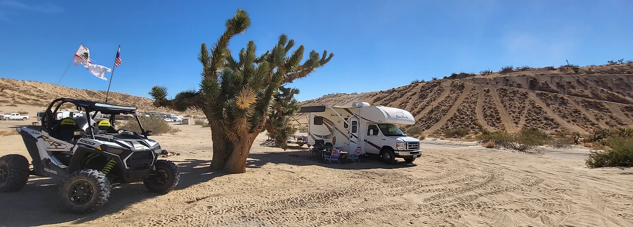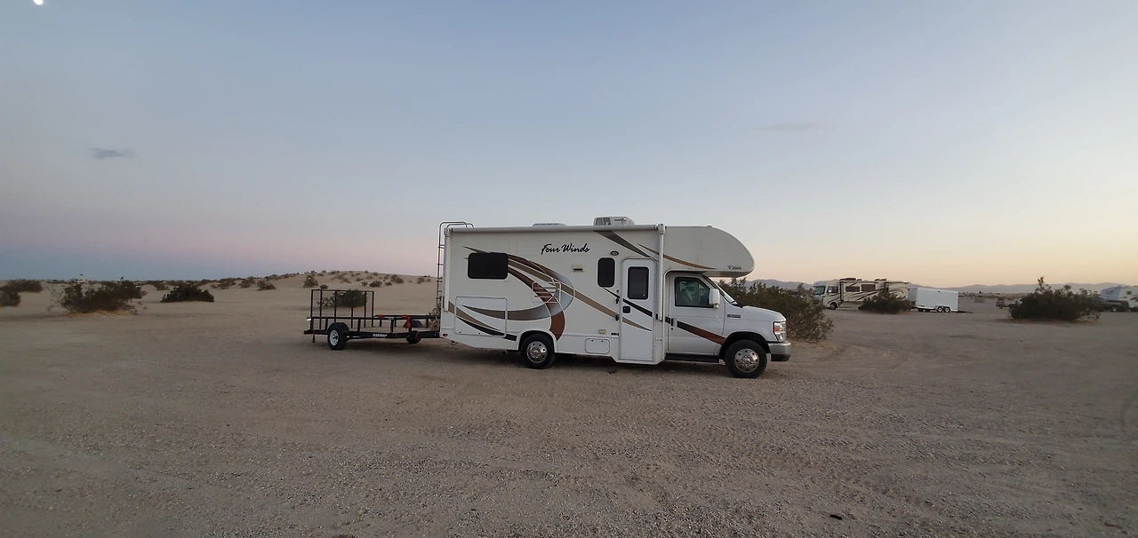 위 두 사진들을 사이드 바이 사이드를 산 다음 주말, 주로 11월 중순 부터 오코틸로 웰의 off roading 시즌이 시작된다. 사막은 10월말까지도 화씨로 80도 후반에서 90초반까지 덥기 때문이다. 이번엔 RV에다 트레일러를 훅업해서 왔다.