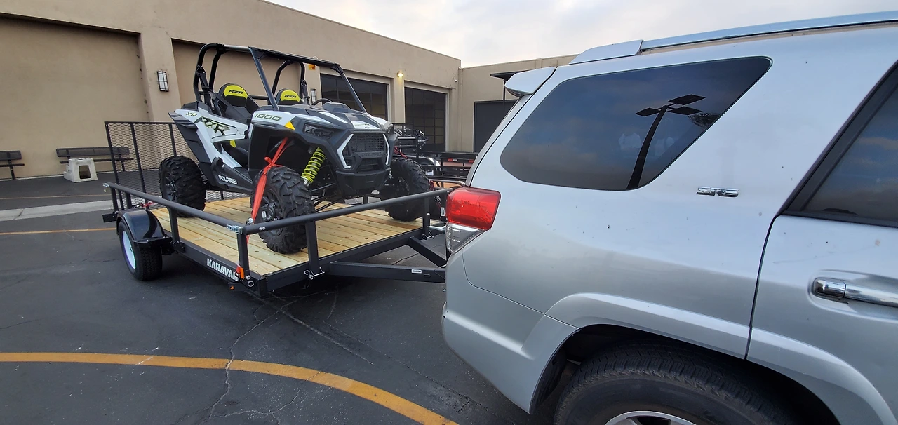 내 suv에 새로 산 트레일러를 훅업하고, (내 suv는 예전에 트레블러 트레일러를 샀을때 브레이크 시스템과 브레이크 등 시스템을 추가 달았어서, 트레일러에 달린 브레이크등 플러그를 내 suv달린 브레이크 등 커넥터에 연결만 하면 되었다) 사이드 바이 사이드를 올리고 끈들로 단단히 고정하고 간단히 설명을 듣고 끝났다. 이렇게 사고를 치는건 순간이다. 페이먼트는 다음달 부타 걱정하고 지금은 즐기자.