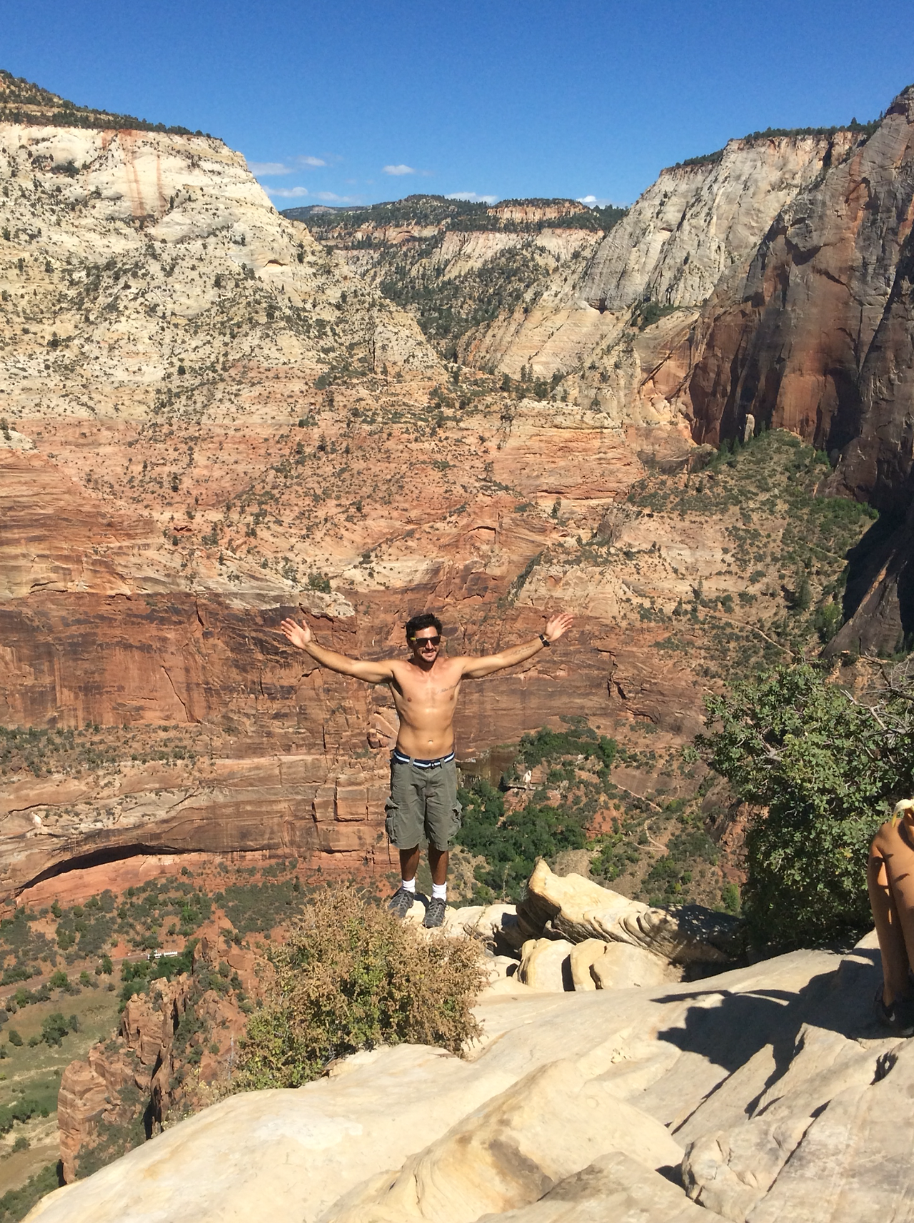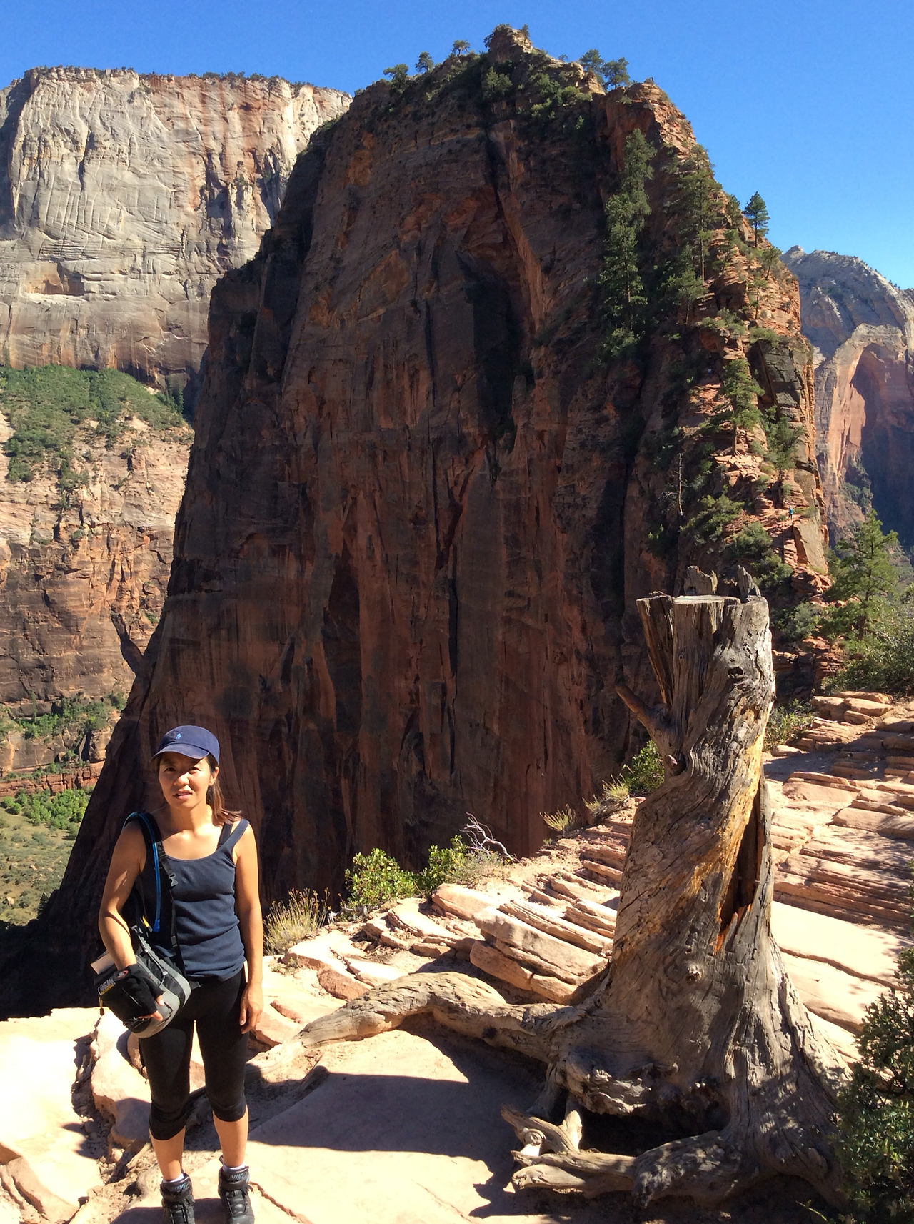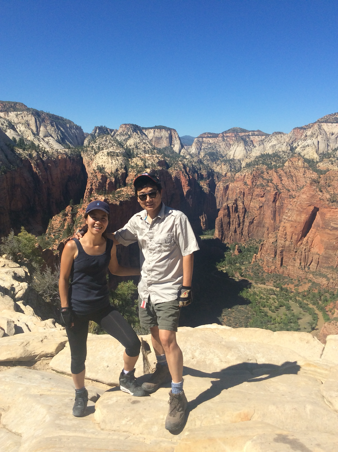 우와 올라왔다. 기념사진을 안찍을 수없었다. 생존 보고 같은 기념사진. 정신없이 사진 찍을 여유도 없이 올라오다 보니 어느새! 드디어! 꼭대기가 평평한 앤절스 랜딩에 도착할 수 있었다.