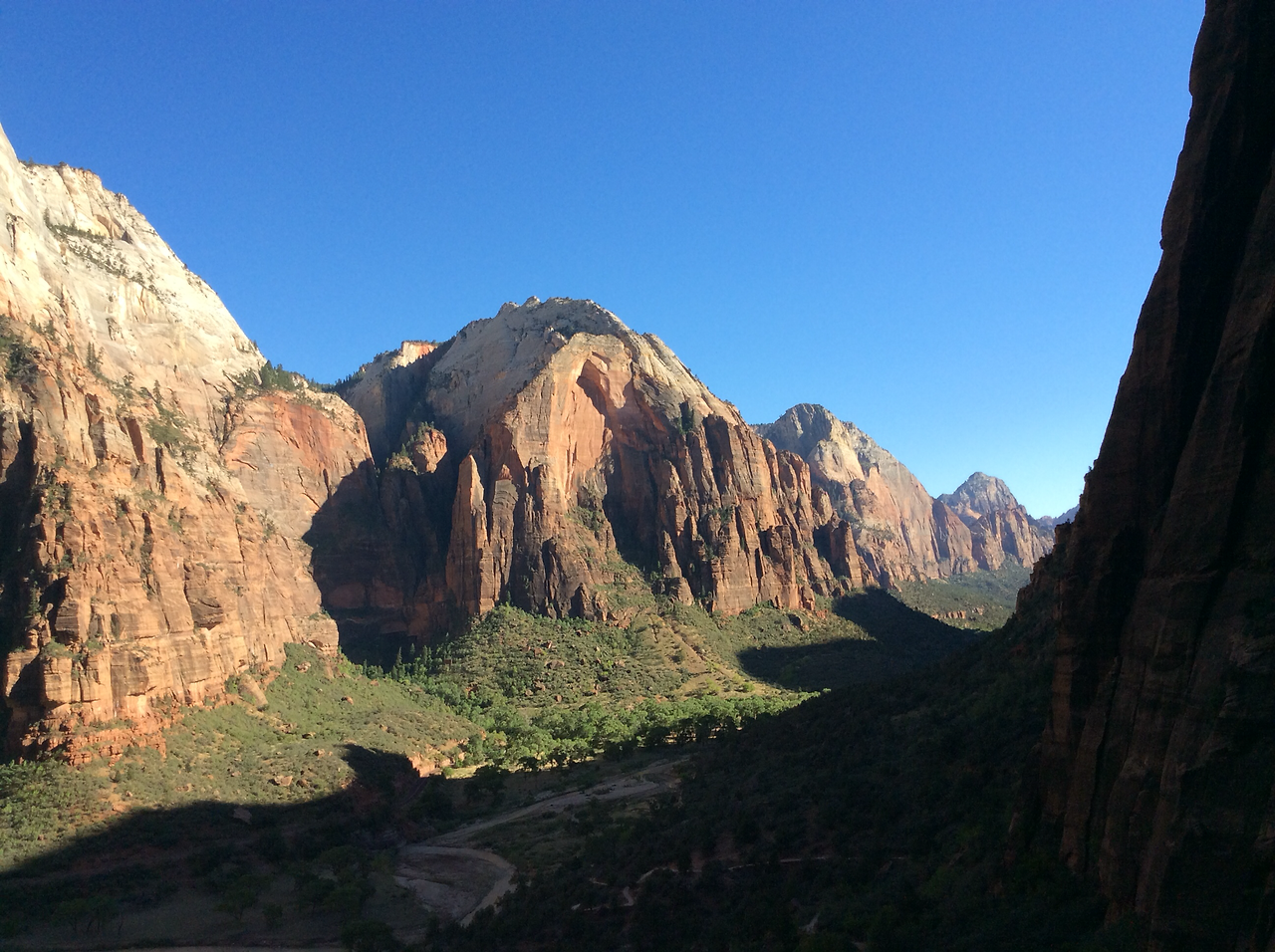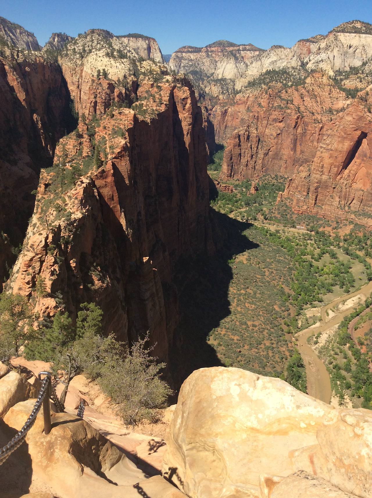 겁이 별로 없는데.... 이번 앤절사 랜딩 트래킹을 하면서 체인을 잡고 올라가는 구간의 처음 삼십분은 정말 무서웠다. 하지만 꼭대기에서 360도 막힘없이 돌아본 뷰는 속이 다 시원하고 바람도 상쾌했다. 당장이라도 하늘에서 천사떼들이 내려올 수 있을 것 같은 기분도 들었다... 그리고 사방으로 뻗어나간 zion canyon의 깊이를 가늠해 볼 수 있었다. 꼭대기에 올라간 이들의 얼굴은 웃음이 가득했고, 다들 뭔가 해낸듯한 기분을 맘껏 즐기고 있었다. 이름만 듣고 왠지 평화롭고 사랑스러운 풍경을 상상한 내 기대를 완전히 깨버린 트래킹이였다. 삶이 회의적일때 이곳을 올라갈때의 느낌을 생각해보려고 한다. 떨어지지 않고 살기 위해 손바닥에 체인이 베겨낼 정도로 꼭 붙들고 있던 그 절박함을 말이다.
