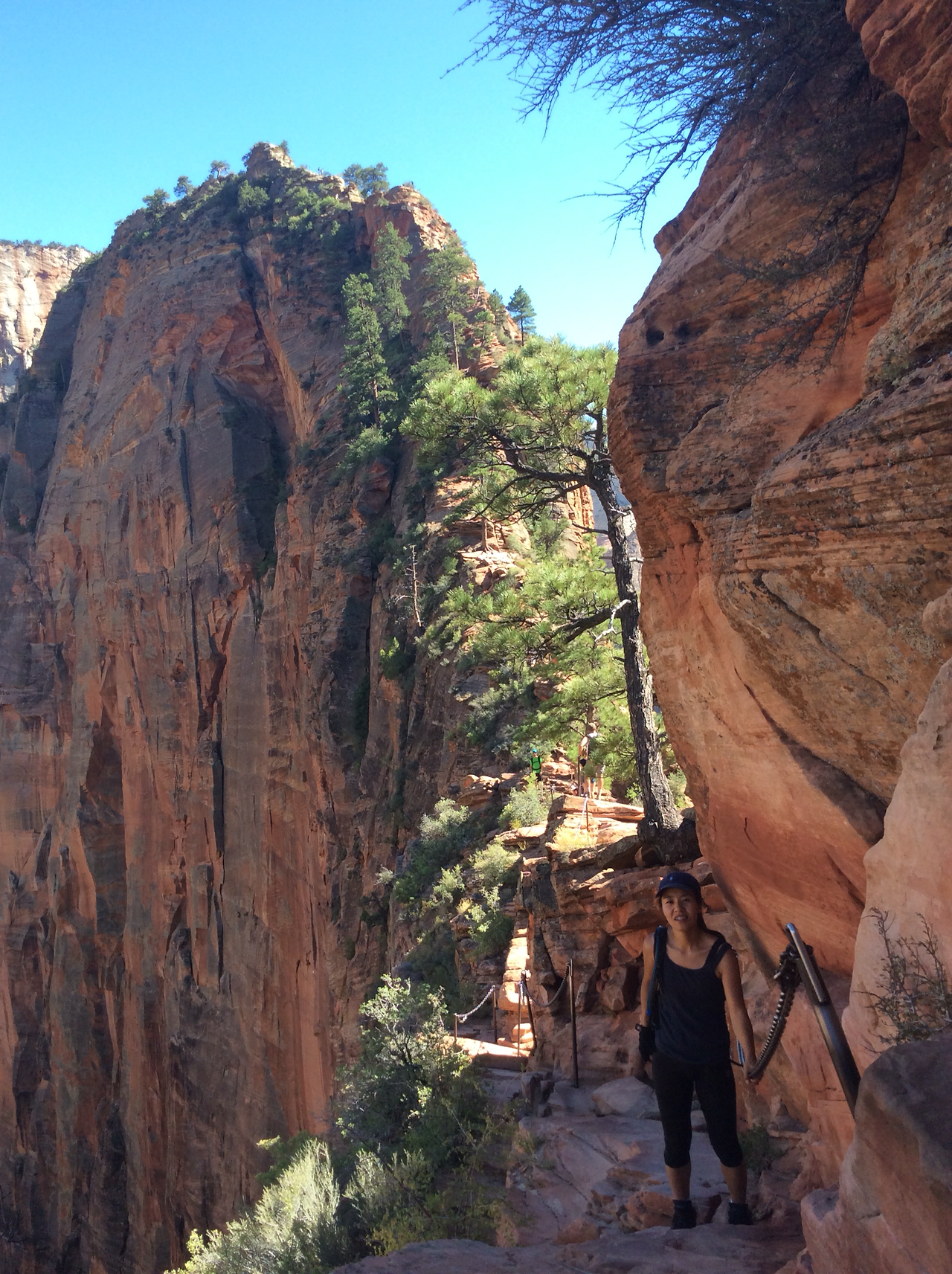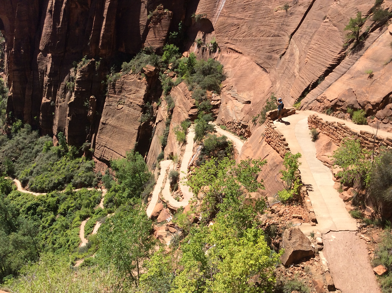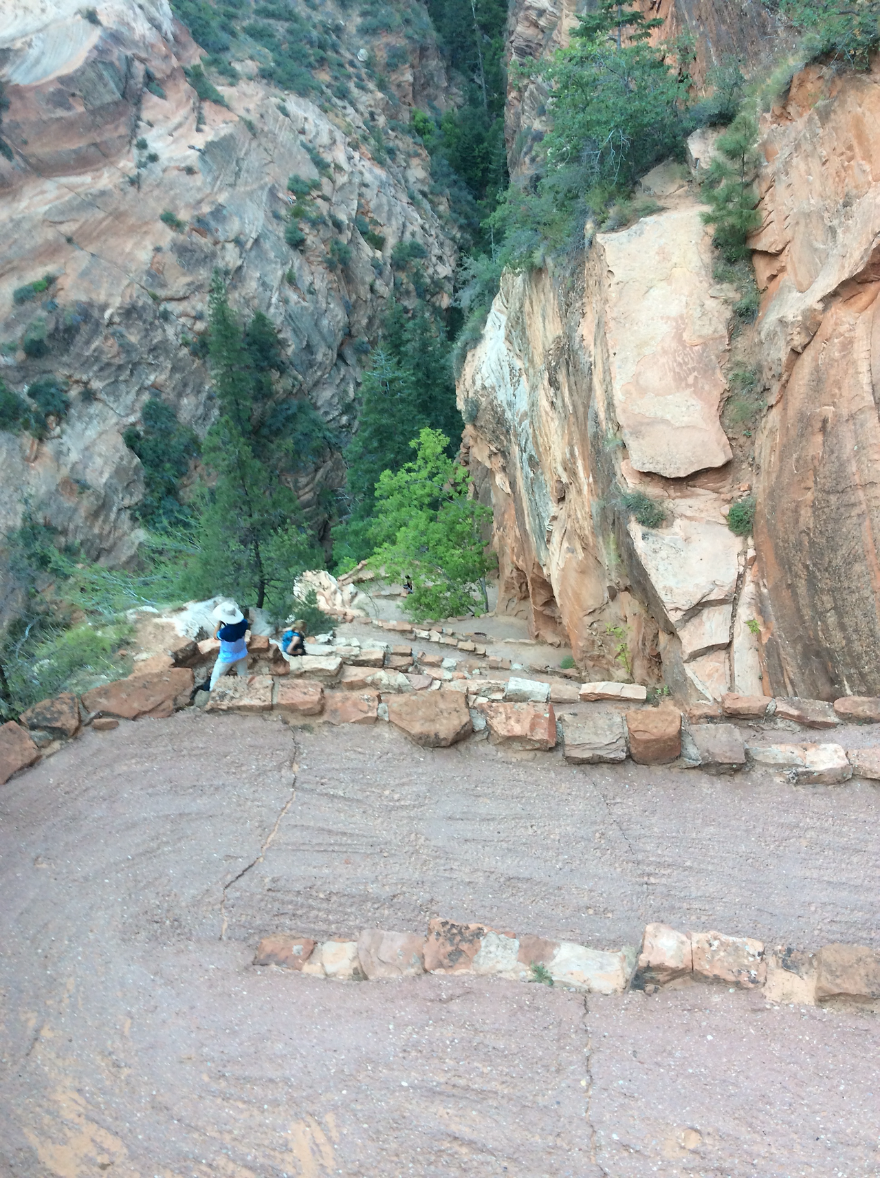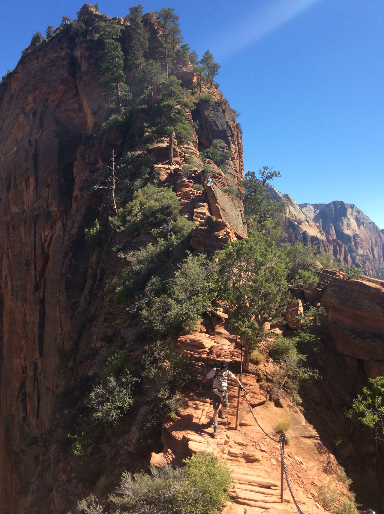 하산하는 중... 저 위가 앤절스 랜딩이다. 내려가는 우리와 반대로올라가는 사람을 보면서 그제서야 나도 저렇게 올라갔구나 되짚어 보기도 하고... 남들이 올라가는 것만 봐도 공포영화보듯이 섬찍하기도 하다.