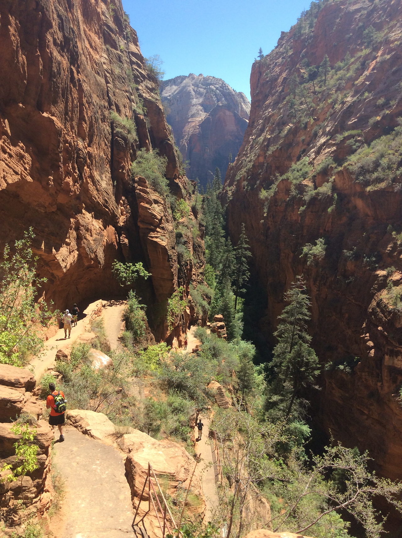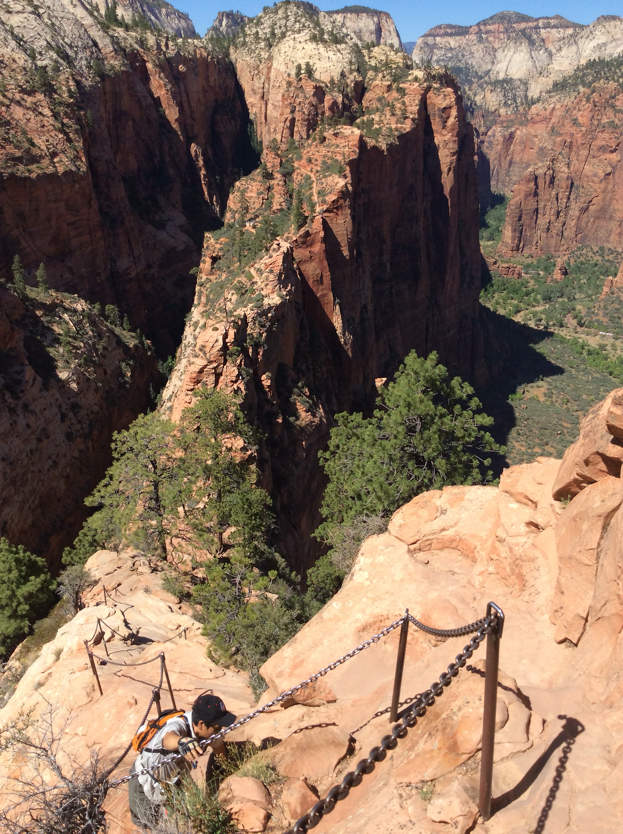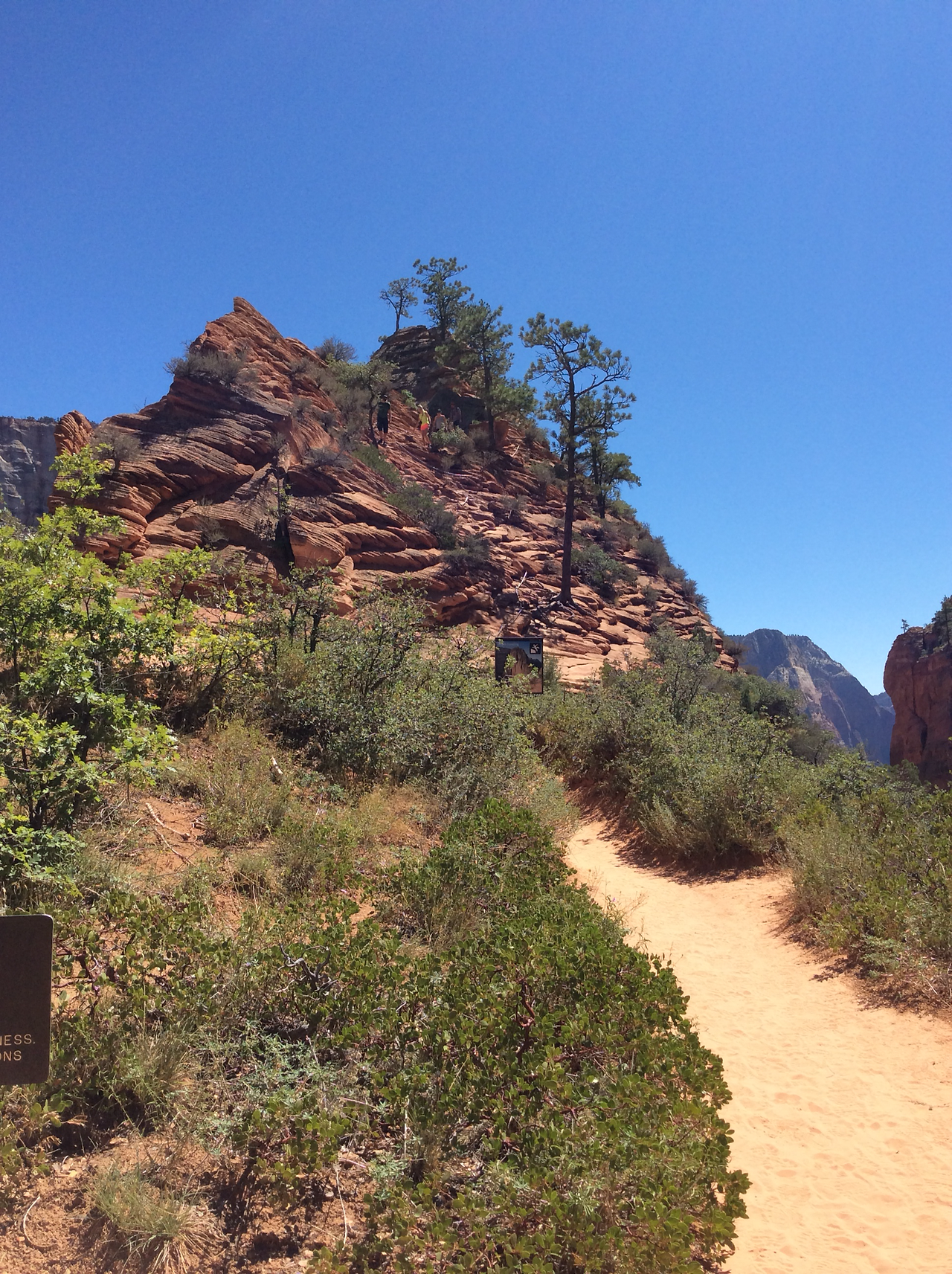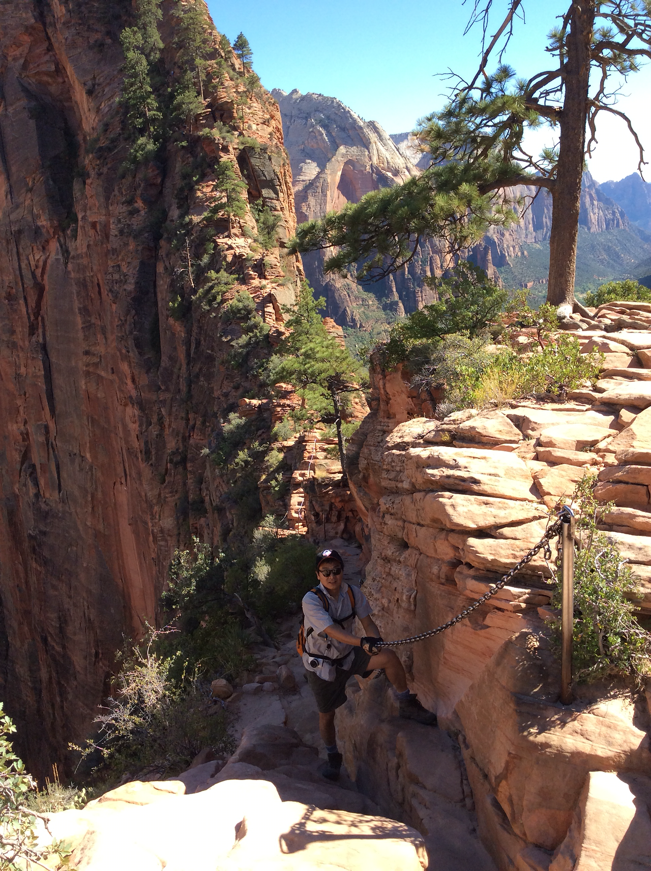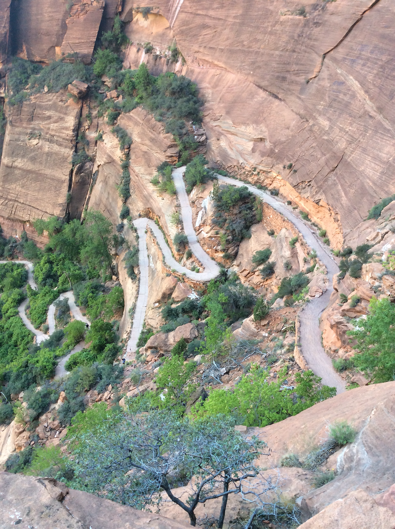 하산하는 중... 저 위가 앤절스 랜딩이다. 내려가는 우리와 반대로올라가는 사람을 보면서 그제서야 나도 저렇게 올라갔구나 되짚어 보기도 하고... 남들이 올라가는 것만 봐도 공포영화보듯이 섬찍하기도 하다.