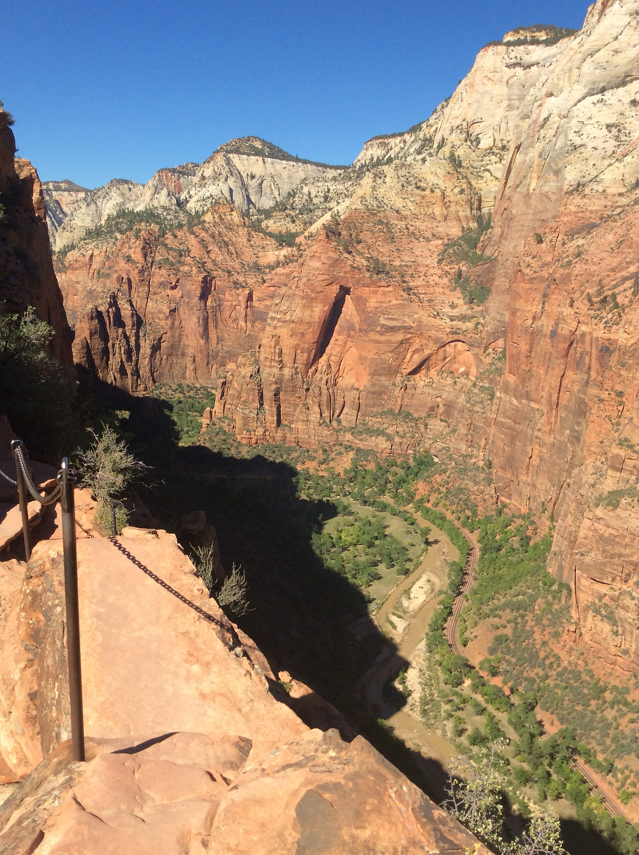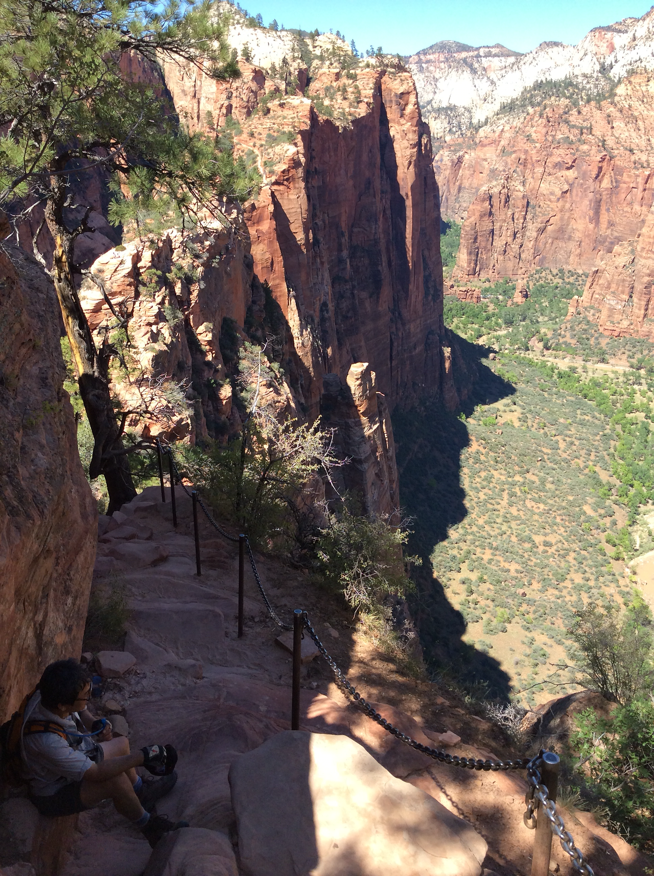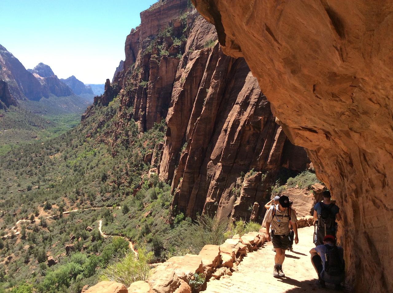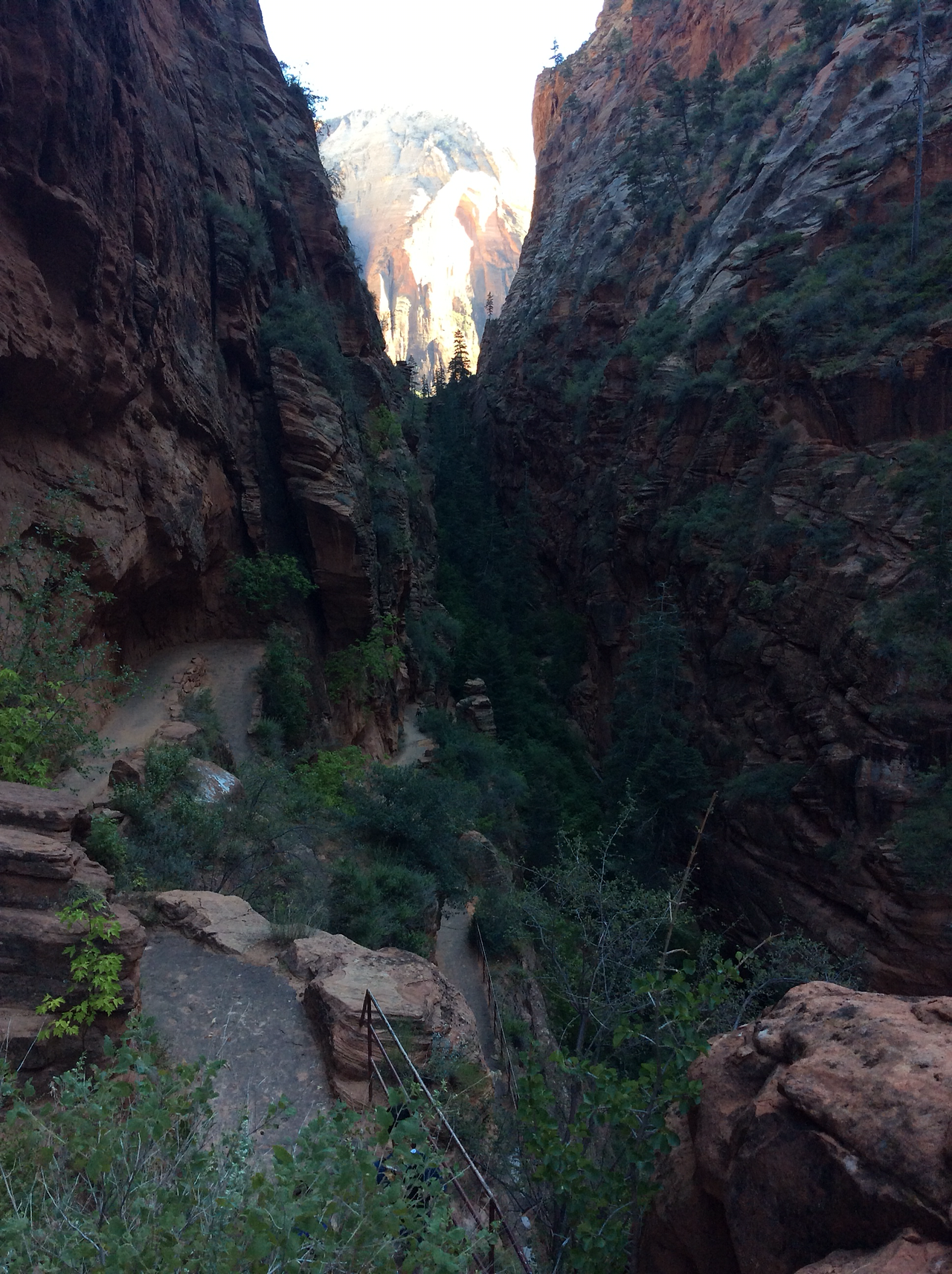 하산하는 중... 저 위가 앤절스 랜딩이다. 내려가는 우리와 반대로올라가는 사람을 보면서 그제서야 나도 저렇게 올라갔구나 되짚어 보기도 하고... 남들이 올라가는 것만 봐도 공포영화보듯이 섬찍하기도 하다.