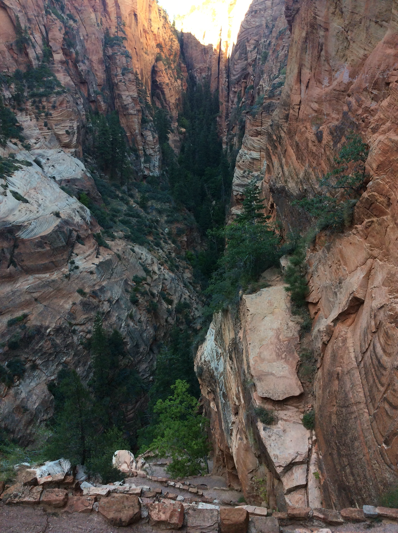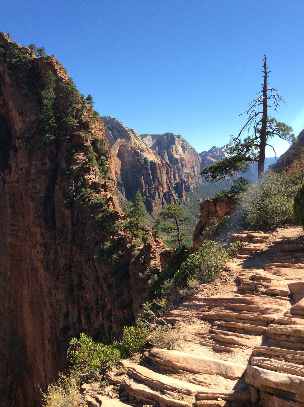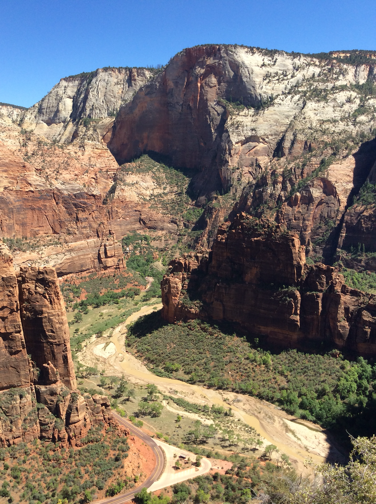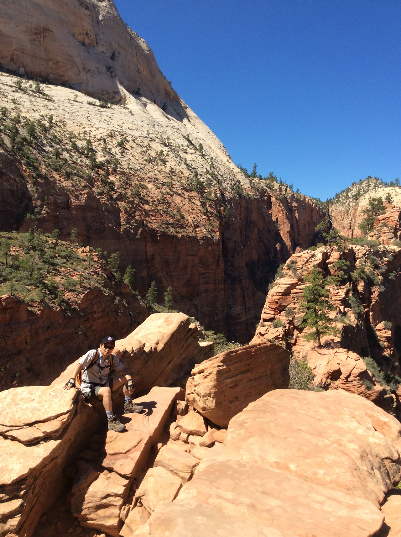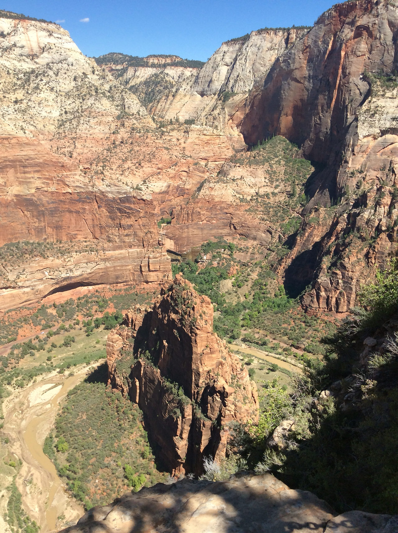 하산하는 중... 저 위가 앤절스 랜딩이다. 내려가는 우리와 반대로올라가는 사람을 보면서 그제서야 나도 저렇게 올라갔구나 되짚어 보기도 하고... 남들이 올라가는 것만 봐도 공포영화보듯이 섬찍하기도 하다.