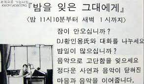 응답하라 육백 삼십구 킬로 헤르츠 동. 양. 방. 송. '밤을 잊은 그대에게'.....