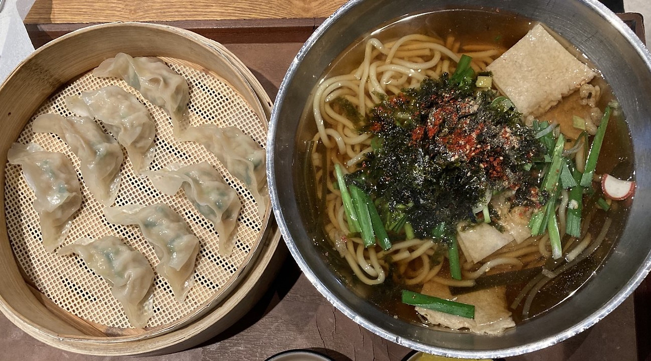 내가 탈 공항버스 출발시간은 오전 6시 30분, 그리고 6시에 후드코트 셔터가 올라가고 있었다. 나는 마치 기차역 가락국수를 먹으려는 기세로 뛰어들었다. 국숫집 아주머니는 버스 출발시간 전에 먹고 갈 수 있다면서 만두와 시원한 멸치국물 가락국수를 후다닥 말아주셨다. 종이같이 얇은 만두피가 식감을 더하고 가락국수는 가슴까지 따뜻하고 시원했다.