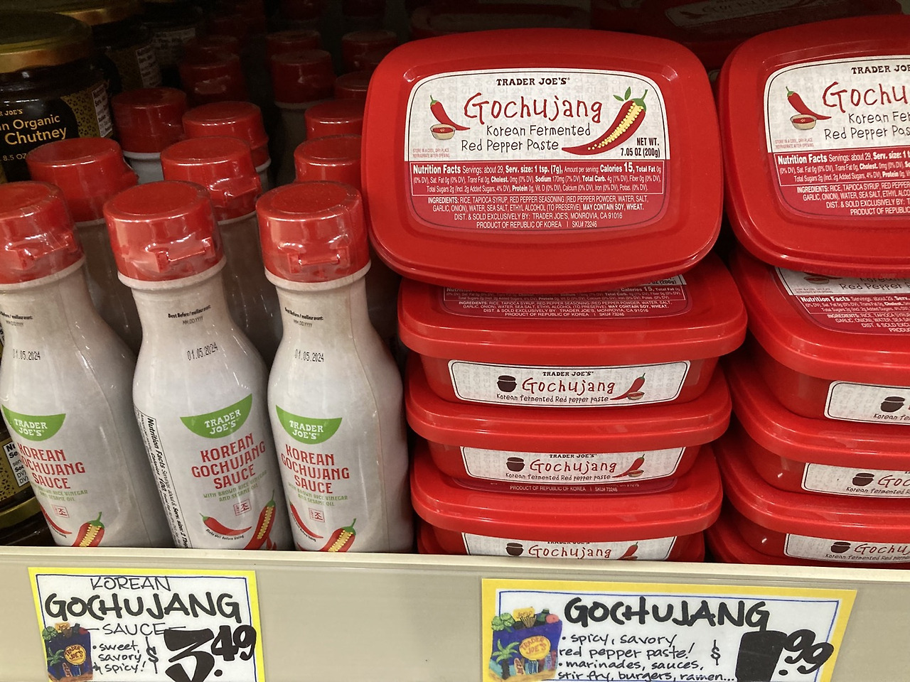 트레이더조스는 이미 많은 한국음식을 판매하고 있다. 김, 김치, 잡채, LA 갈비, 떡국떡, 떡볶이, 파전, 고추장 등. 하루는 우리 동네 트레이더조스에 갔더니 작은 사이즈 고추장 수백 개를 피라미드처럼 중앙에 쌓아놓은걸 보고 '웬 고추장?' 싶었다. 그런데 다음날 가보니 (나는 운동삼아 걸어서 매일 트레이더조스에 간다) 그 피라미드의 바닥이 보였다. 한국사람들은 한인마트에서 큰 용량을 더 싸게 살 수 있다는 걸 알고, 한인마트도 5분 거리에 있으니까 굳이 여기서 안 살 텐데 그 많은 고추장을 누가 다 집어갔을까? 싶었다.
