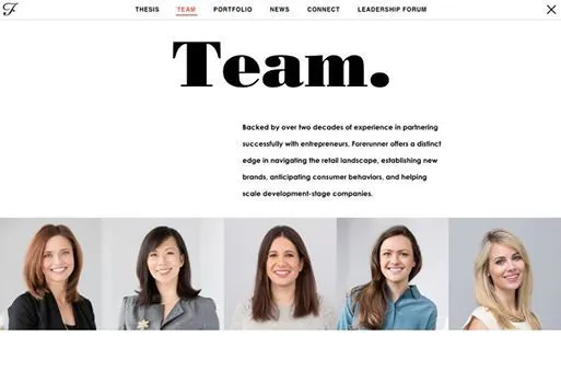 <모두 여성 파트너로만 이뤄진 소비재, 이커머스 전문 벤처캐피털(VC) ‘포러너벤처스’, 사진 출처: forerunnerventures.com>