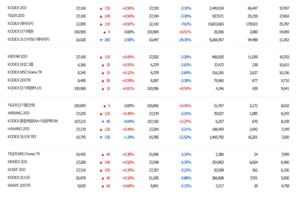 여기에서 내가 원하는 ETF를 차트, 거래량, 기관과 외인 수급, 정보를 신중하게 살펴본 후 구매하시면 됩니다. 주식 시장에 등록이 다 되어 있으니까 마음에 드는 종목이 있으시면 HTS나 MTS에서 검색해서 바로 구매할 수 있어요~