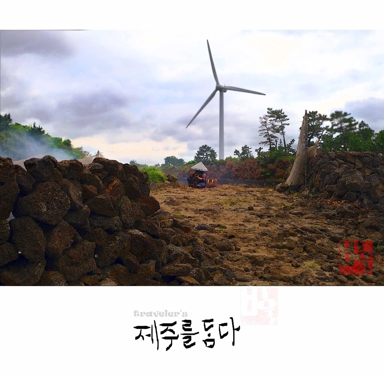 말을 밖으로 꺼내는 순간 놀라울만한 그림자가 비췬다. 불을 피운 당사자이다. 묘한 기분을 짜낸다. 모락모락 피어오르는 연기에 베트남에서 볼법한 삼각 모자를 쓴 연령은 알 수 없지만 아주머니다. 고개를 숙인채 휴대폰 삼매경에 빠졌다. 곰팡이내 나는 입을 열려 다가갔지만 섬뜩한 기운에 멈칫한다.