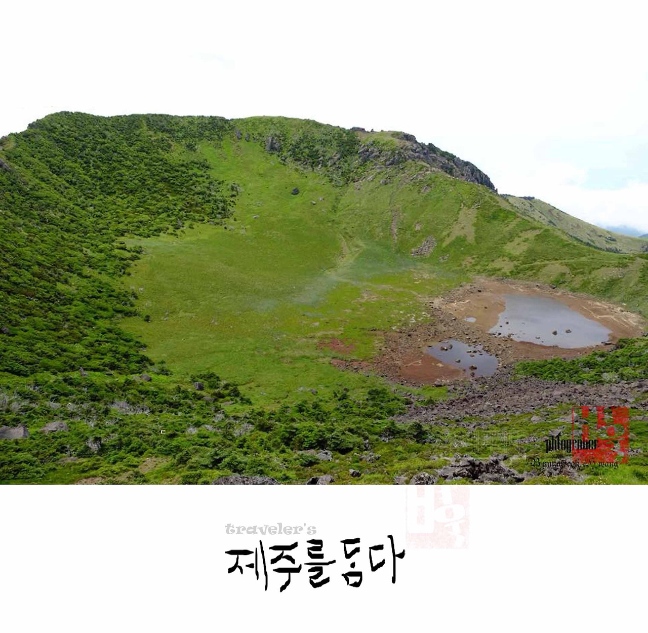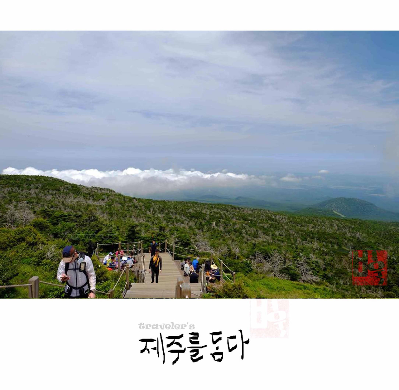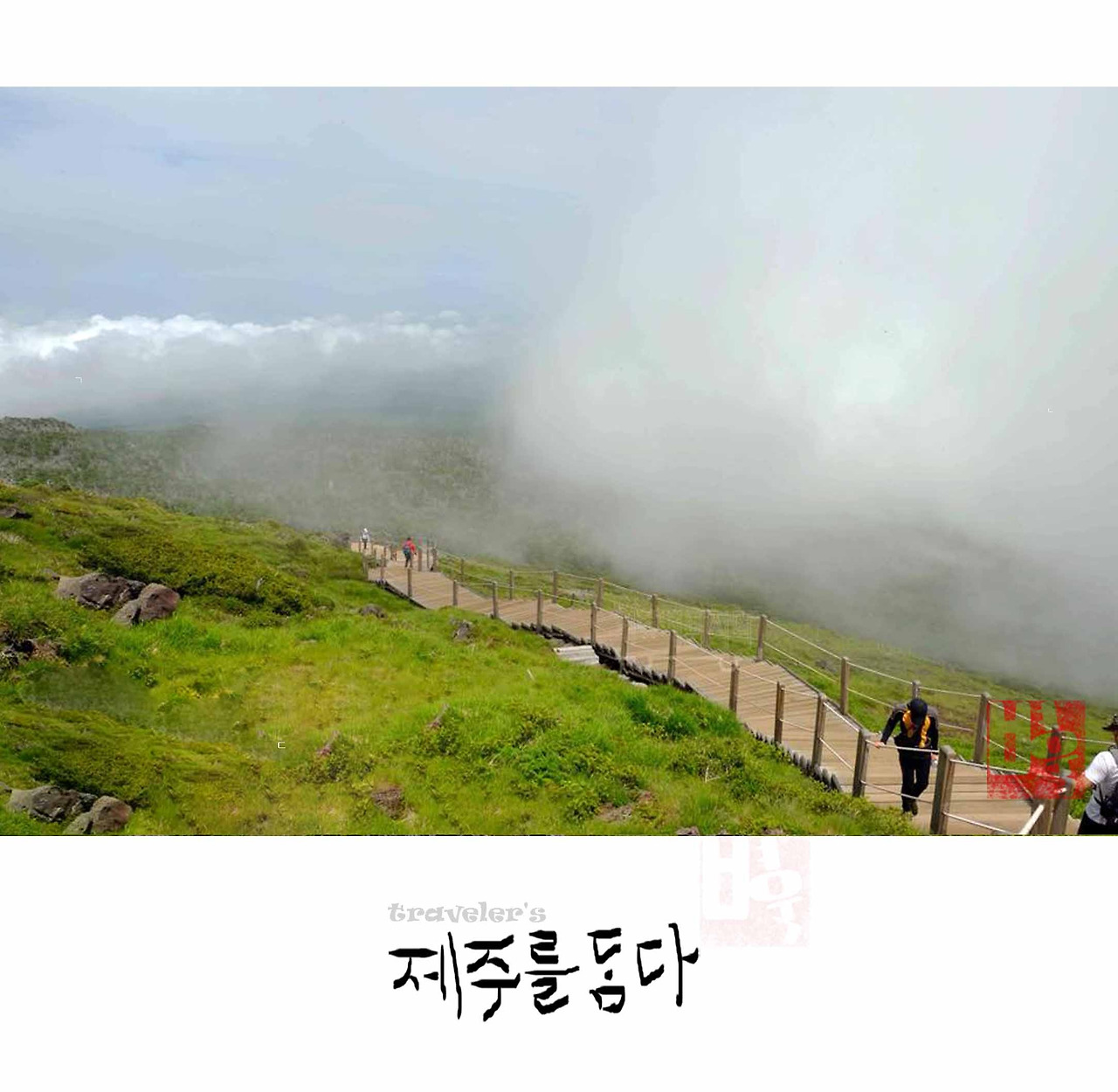 어생승오름 당시 보았던 검털파리였다. 정상으로 가까워지면 질수록 영화에서 보는 자연재해 같았다. 그냥 그곳은 검털파리 세상이었다. 그러나 이제 정상에서 내려다 보는 백록담이 기다리고 있다. 검털파리에게 질 수 없다. 속 마음은 얼릉 찍고 내려가야겠다는 생각이 머리속을 가득 메웠다. 한 걸음을 땔때마다 벌레 수천마리가 날아올랐다. 온몸에 소름이 돋았다. 정상에 발을 들은 놓은 시간은 1시53분. 겨우 20분란 시간을 활용해 검털파리와 싸우가며 풍경을 담았다. 더 이상은... 항복 항복이다. 내려가야만 한다는 메아리가 내 두뇌에 울렸다.
