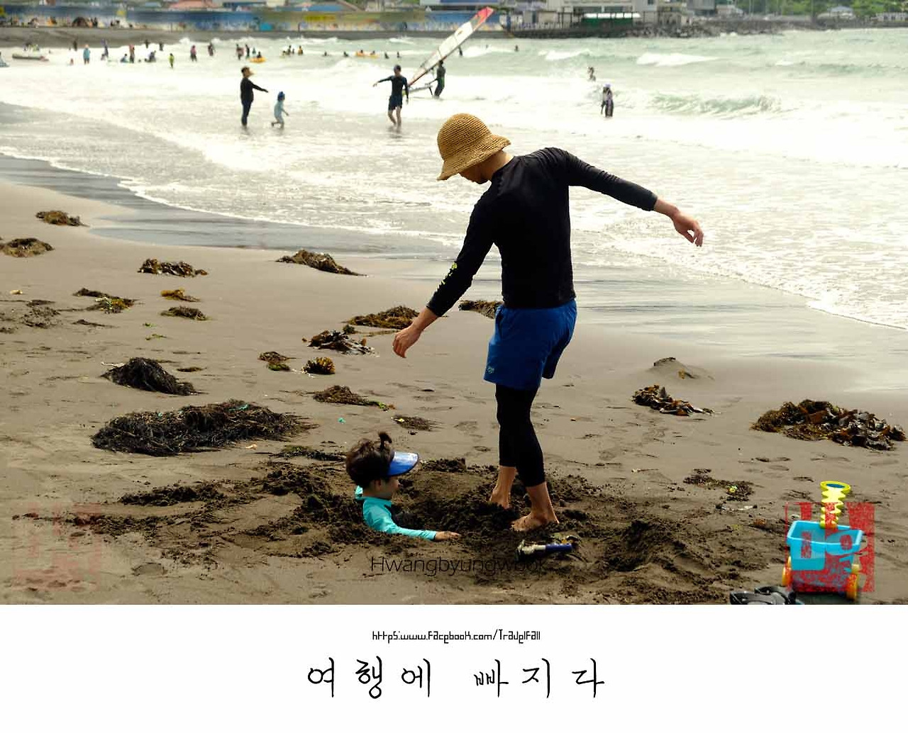화북포구 방파제를 넘어서 유독 귀에 거슬리는 아이들의 괴성이 귀를 잡아당겼다. 마을마다 있는 작은 용천수로 물놀이장이었다. 뜨거운 열기에 지친 아이들이 엄마의 손을 잡고 물가로 나온 것이다. 점프하지 말라고 써 놓은 안내문을 무시하는 듯 뛰어든다. 다행히 얌전히 튜브를 타는 녀석도 있다. 귀여움에 카메라를 들이댄 나를 향해 “야야 사진 찍는다. 빨리해” 뭘 보여줄 건가. 기다렸지만 아무런 반응도 없고 시간만 흘러갔다. 햇볕 아래 서 있던 난 더위에 지쳐서 태양에 지글지글 익혔다. 아이들의 달콤한 농이었을까. 무반응은 시간에 쫓긴 나를 올레길로 다시 돌렸다. 꼬마들에게 한 방 맞은 씁쓸한 이 맛은 뭘까?