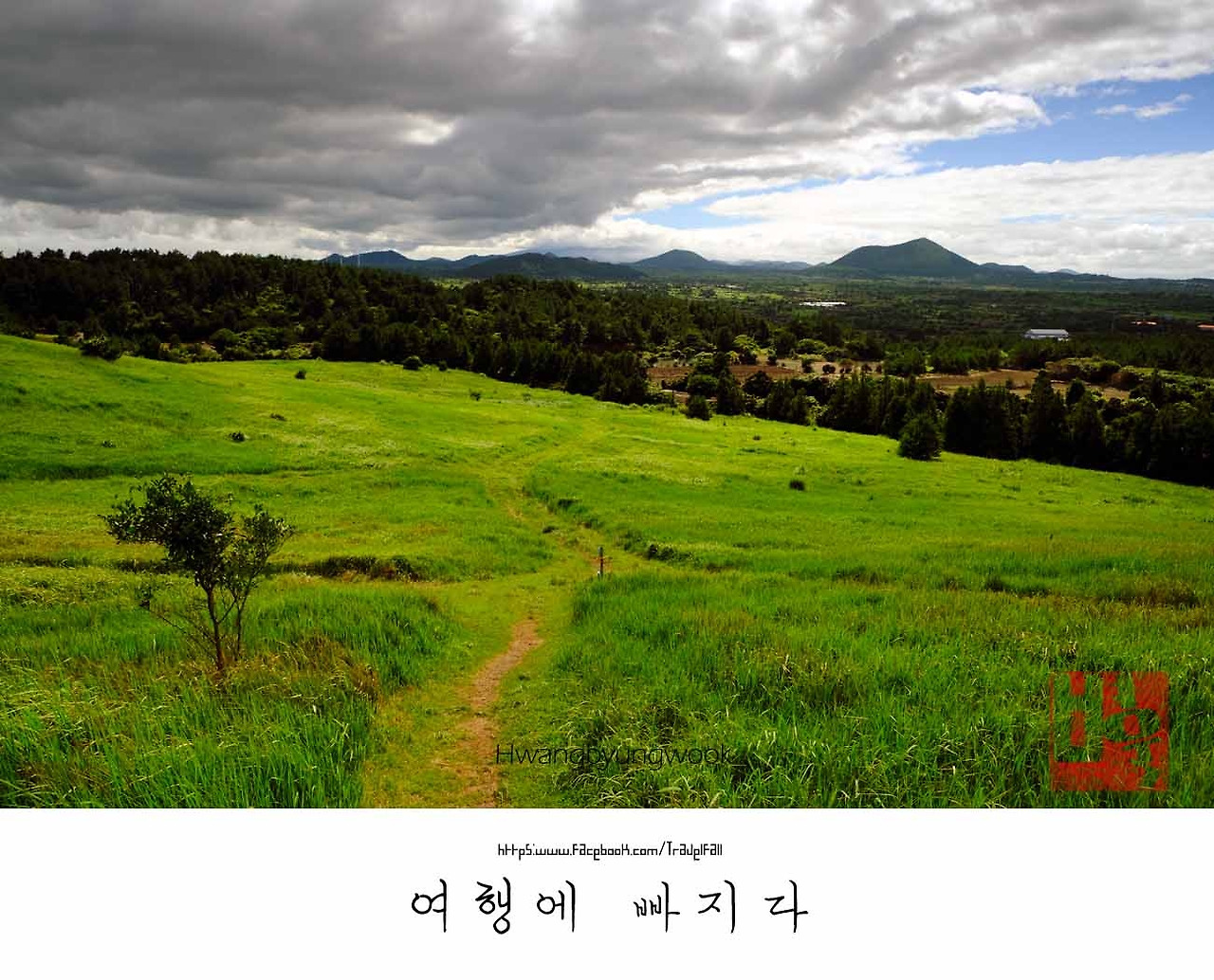 우여곡절을 겪고 정상 전망대에 도착했다. 가히 말로 표현되지 않은 제주의 풍경이 눈을 사로잡았다. 퍼즐 같은 들판 위에는 성산 일출봉, 우도, 지미 오름, 수산봉, 대왕산 등 오름이 줄지어 한눈에 들어왔다. 먹구름 아래로 선녀가 내려가는 듯 노란 빛내림 길을 만들었다. 파란 하늘도 좋지만, 먹구름이 이런 모습을 보여준다는 게 한층 더 좋았다. 주변은 소나무가 군락을 이루었고 잡초와 여러 종류의 들꽃이 환영의 인사를 보낸다. 얼굴을 마주 보고 인사를 나누기에는 언제나 그랬던 것처럼 촉박한 시간에 쫓겨야 했다. 양옆으로 자라난 풀의 배웅을 받으며 길을 따라 내려갔다. 그러나 끝날 것 같은 말미오름의 종점이 보이지 않는다. 다른 오름과 다르게 알오름과 한 몸인 듯 자연스레 이어졌다.