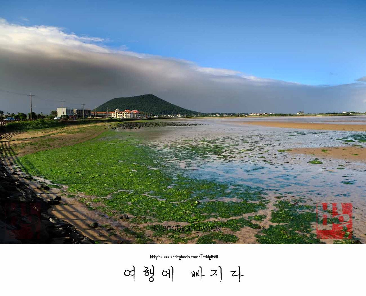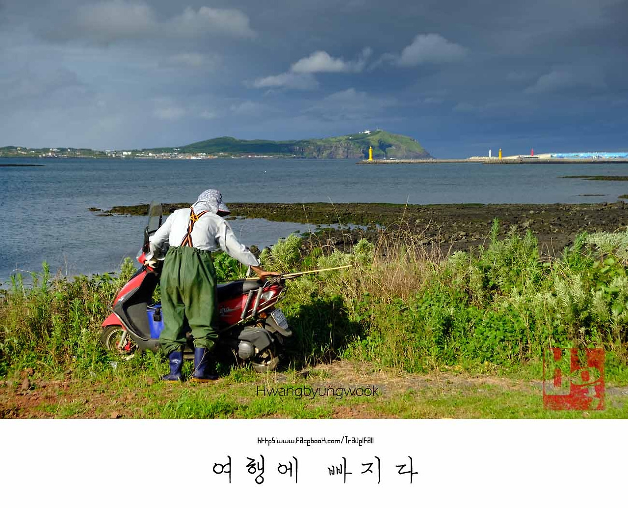 성산 일출봉이 코앞인 성산 부두의 갑문교를 건너는 찰나 부부를 만났다. 걸음걸이에서 애정이 뚝뚝 떨어졌다. 내심 혼자가 아닌 둘의 재미에 눈길이 갔다. 참고 왔던 부러움이 폭발했다. 뒤를 졸졸 따랐더니 알 수 없는 응어리가 부글부글 끓어올랐다. 앞질러서라도 눈앞에서 지워야 했지만, 문제는 그게 아니었다. 지미 오름 위 하늘이 심상치 않다. 하늘은 먹물을 쏟아부은 것처럼 시커먼 구름이 드리웠고 세상은 부옇게 변했다. 아침부터 쌓여 있던 화가 곧 터지기 일보 직전이다. 하늘과 협상을 본 시간이 끝나갔다. 이제 부러움도 배고픔도 한낱 변명에 지났다. 광치기 해변 마지막 모습을 보기 위해 악을 쓰며 걸었다. 성산포항 종합여객터미널을 거쳐 성산 해안도를 돌면 성산 일출봉, 곧 마무리가 된다. 나만 다가오는 구름 비에 두려움을 느꼈다. 편의점 앞, 야외테이블에 앉아 수다를 떠는 사람들, 술에 취한 늙다리 총각으로 보이는 두 명의 아저씨. 비가 오면 비를 맞을 작정이다. 부슬부슬 내리는 비에 전혀 동요도 없다. 천하태평인 성산 주민에 비해 내 마음은 생명이 얼마 남지 않은 매미같이 조급했다. 시곗바늘은 5시를 훌쩍 넘겼다. 땀을 흘린 만큼 1분 1초라도 시간을 아껴야 한다. 남은 구간은 3.5km 남짓, 끝이라는 생각에 긴장감이 풀렸는지 갑자기 피로가 몰려왔다. 갈까 말까 망설여졌지만, 이것조차 걷지 못한다면 바보다. 더 굳은 필승의 각오를 다져야 했다.