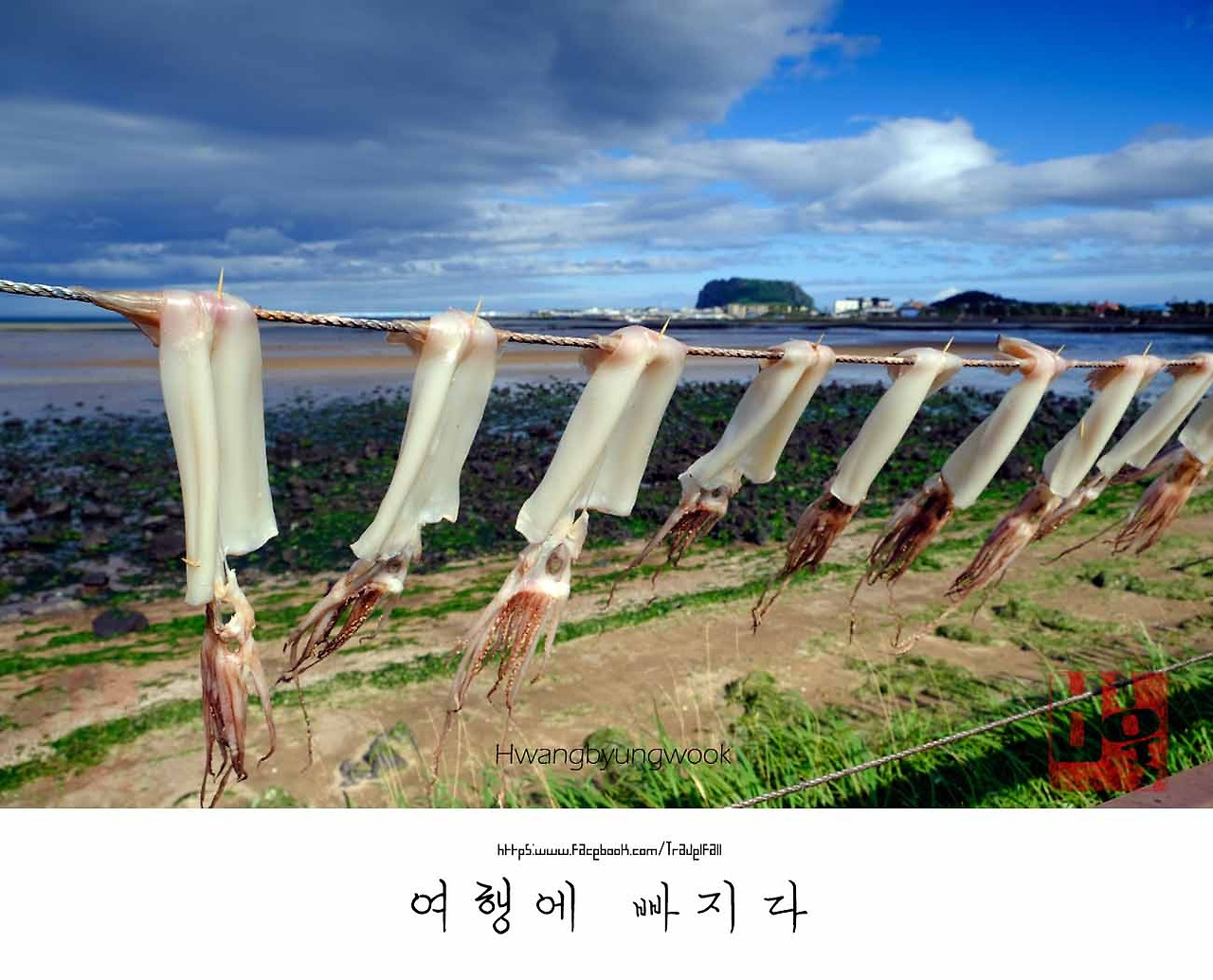 그때 마침 한치가 빨랫줄에 매달려 바닷바람을 처맞으며 쫄깃하게 말려갔다. 생김새부터 한 장할 노릇이다. 입안 가득히 침이 고였다. 출발한 시점부터 5시간이 지났다. 아무것도 없는 길바닥 위에서 위장이 화살의 시위를 당겼다. 꼬르륵~ 함성이 길이가 짧아질수록 걸음걸이는 2배의 힘이 더 들었다. 뱃가죽과 등짝이 만날수록 마음만 조급해져 왔다. 풍경도 옆도 보이지 않는다. 그저 앞만 보며 달리는 경주마가 됐다. 달리고 달려 계속 달렸다. 위장도 못 느낄 번개 같은 움직임에 해안도로의 끝을 맛볼 때다. 그래도 머리가 하얗게 센 약주에 취한 아저씨보다 상태는 좋다. 초등학교 3학년도 가는 길 청춘인 내가 못 갈 리가 없다. 비틀비틀 눈동자가 흔들리는 아저씨가 더위에 쓰러지지 않을까 걱정이 더 앞섰다.