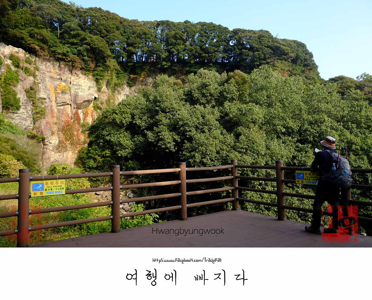 “안녕하세요. 올레길 걸으시나 보네요?” “네.” “어디서 오셨어요.”(당연한 것을 물어보는 것 같지만 기초적인 예의다) 별거 없는 대화 속에 벌써 엉또 폭포에 당돌했다. 잠깐이었지만 동료가 된 한 남자와 난 벌써 혈관의 모든 피가 폭포수처럼 뜨겁게 흘렸다. 곱게 잘 깔린 나무데크의 안내를 받으며 폭포 앞에 도달했지만, 폭포의 그림자조차 없다. 아차~ 엉또 폭포는 비가 내리지 않으면 물이 흐르지 않았다. 한두달쯤 소량의 비가 내려 헐레벌떡 달려왔지만, 쥐 오줌만큼 흘러내렸던 폭포 줄기의 기억이 떠오른다. 깎아지른 기암절벽과 절벽 아래 작은 물웅덩이가 엉또폭포인 것을 증명했다. “폭포가 없네요.” “아~ 여긴 비가 올 때만 폭포가 생겨요.” 앞서 보았던 푯말의 글귀가 생각난다. “높이가 나이아가라 폭포와 맞먹는 50m이고, 물 안 내리는 폭포로 세계적으로 거의 유일하여 세계 4대 폭포가 되었다.” 웃긴 것 같으면서 맞는 말일지 모른다는 확신이 들었다. 그럴싸한 의문은 둘째치고 남자의 표정은 아쉬움이 가득했다. 폭포를 마주했다면 좋았을까 하는 의문이 생긴다. 몸을 돌려 엉또폭포를 벗어나려는 순간 하나의 푯말이 또 보였다. “손님의 미모가 하늘을 찔러 비는 왔는데, 그 비가 아주 쪼끔 모자라 폭포가 없습니다.” 개그 같은 글귀에 피식 웃음이 나왔다. ‘미모라? 내가 한 얼굴 하는 건 어떻게 알았지.’ 막간의 웃음과 천연 난대림에서 울리는 새들의 노랫소리가 상쾌했다. 날개를 펴고 하늘을 빙그리도는 터줏대감 황조롱이의(천연기념물 323호) "기잇기잇" 울음에 비웃는 모습에 화가 치밀기도 한다. 폭포와 가까이 있는 무인카페에서 찐한 커피 한 잔의 여유를 찾고 싶었지만, 일각을 다투는 하루다. 엉또 감귤 농원을 지나서 올레 7-1길을 마무리하기 위해 느긋함 속에 재빠름을 장착해야만 한다.