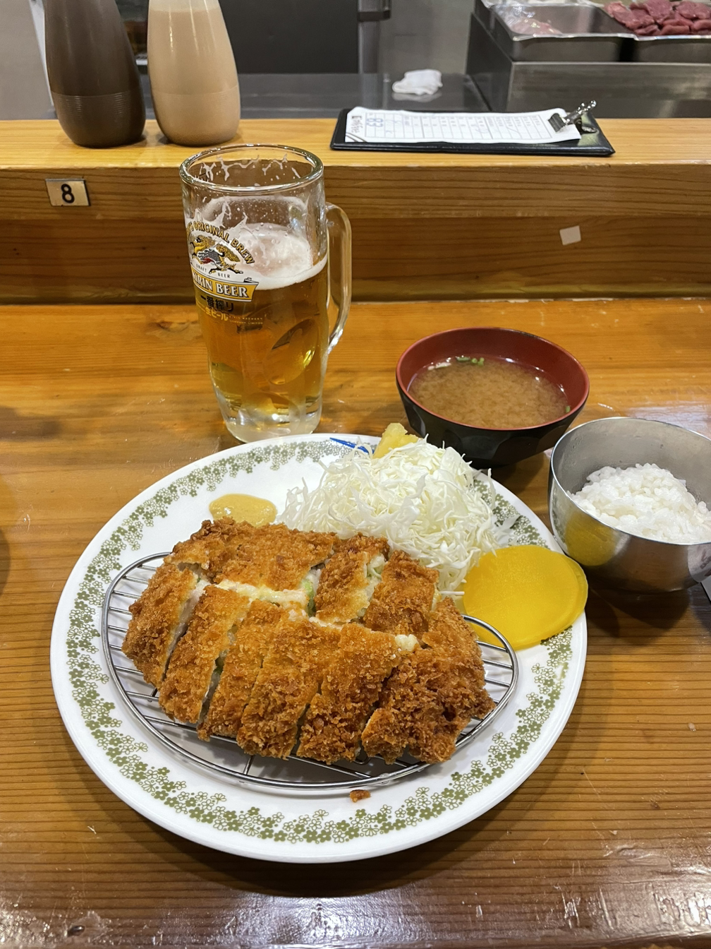 명동돈가스에 가면 항상 코돈부루를 먹는다. 얇게 썬 돼지고기가 치즈, 양송이, 피망, 양파를 감싸고 있는 돈가스다. 쉽게 말하면 치즈돈가스다. 주로 혼자 가면 1층 다찌석에 앉는데, 메뉴판을 건네받기도 전에 코돈부루, 기린 생맥주 한잔을 시킨다. 주문을 하면 생맥주를 먼저 내어주신다. 잊지 않고 양배추 샐러드도 함께 내어주신다. 기다리는 동안 맥주 마시며 안주 삼으라고.