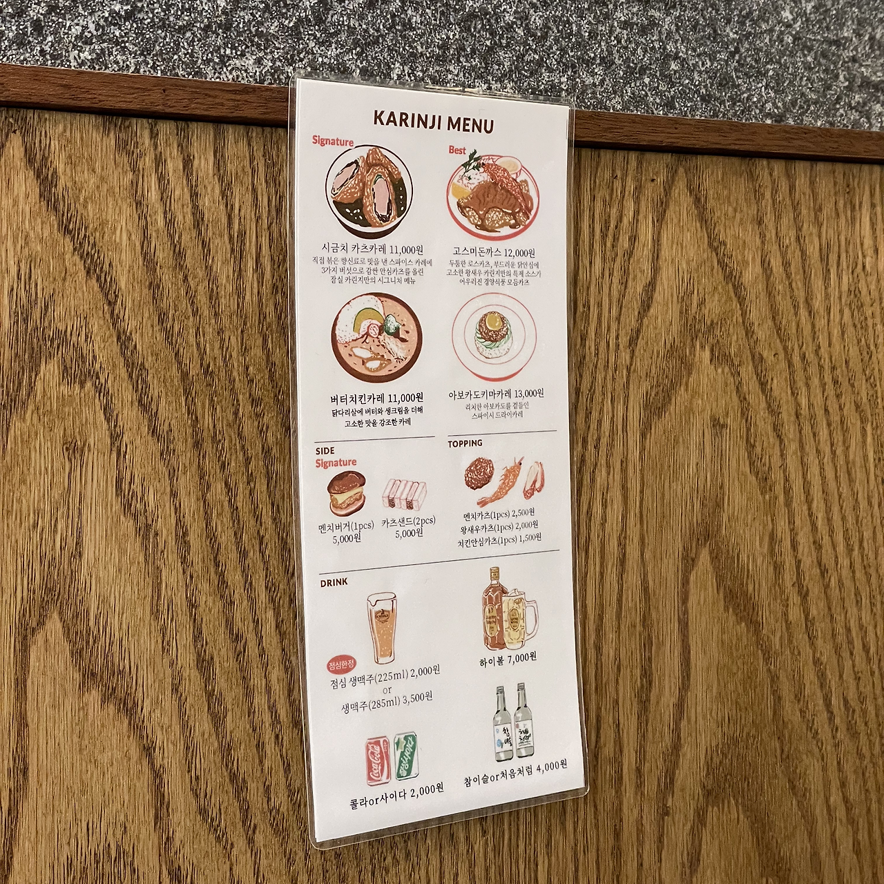 재정비를 거치며 공간 배치부터 메뉴까지 싹 바뀌었다. 코돈부르나 파스타와 같은 경양식 메뉴들이 빠졌고, 성수점에서 자주 먹어봤던 카레와 돈가스 메뉴들로 채워졌다. (전에 있던 음식들도 나쁘진 않았는데 잘하는 메뉴들로 과감하게 선택과 집중을 한 것 같다.) 거기에 잠실점에서만 판매하는 #시금치카츠카레 가 새로 생겼다. 돈가스만 제대로 한번 먹어보자는 생각에 카츠카레, 고스미돈까스, 카츠산도를 시켰다.