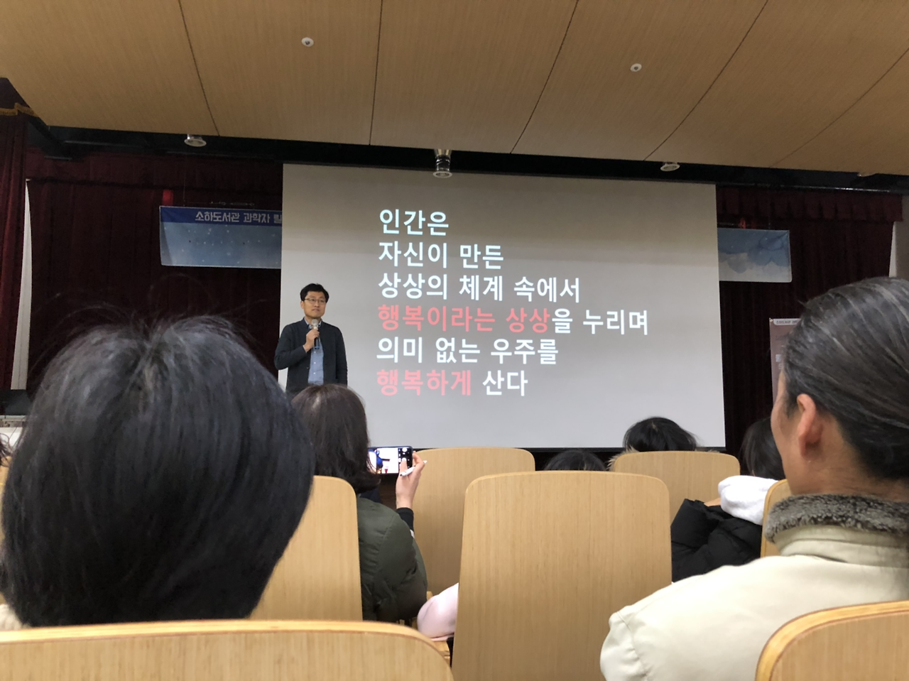 김상욱 교수 강연은 기대했던 것보다 더 좋았습니다. 그렇게 딱딱하지 않았고 과학이 다른 인문학과 달리 어떻게 인간의 직관과 다르게 보면서 발전해 왔는지 알 수 있었습니다. 애들이 많이 왔지만 애들한테는 좀 어려울 수도 있었을 거 같습니다. 다만 양자역학 언급이 없어서 아쉬웠습니다. 가장 좋았던 건 왜 과학이 시작이나 기원에 집착하는지 이해할 수 있어 좋았습니다.