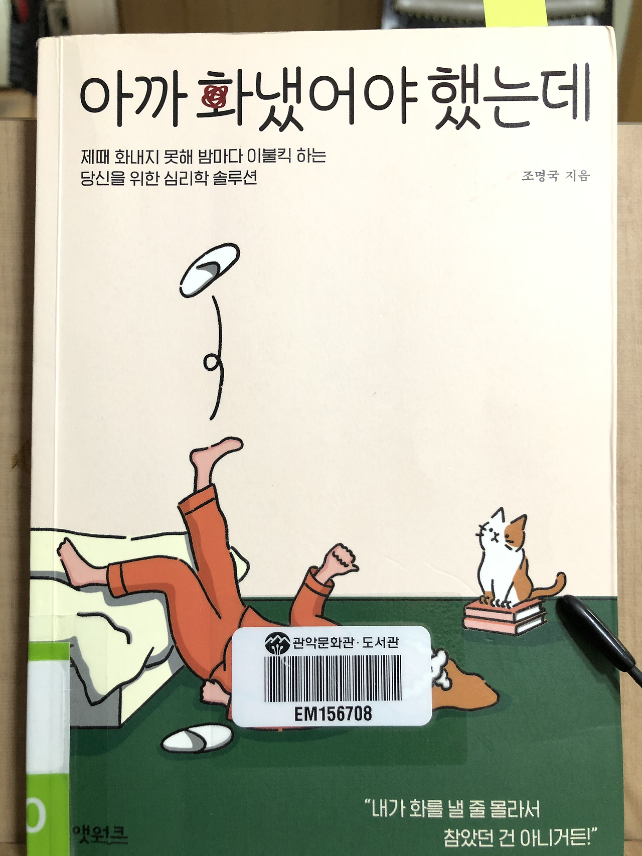 독서모임에서 작가와의 만남 때문에 읽게 된 책, 저자가 너무 젊어서 놀랐다. 평소에 화를 잘 못 내시는 분들에게 어떻게 화를 잘 낼 수 있는지 조언해 준다.