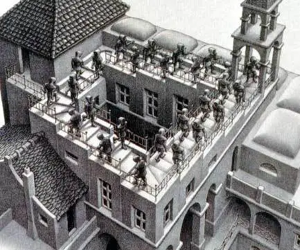 우주 끝 너머에 무엇이 있는지는 모르지만 우주는 유한하면서도 끝이 없을 수 있다고 말한다. 지구 표면을 한쪽 방향으로 쭉 걸어가면 끝없이 걷게 되는데 원이기 때문이다. 마찬가지로 3차원 공간도 구부러져 있으면 유한하지만 끝이 없을 수 있다. 뫼비우스의 띠나, 화가 에셔의 계단을 생각해보면 된다. 이 책에선 단테의 신곡에 나오는 내용으로 설명했다. 이런 3차원 공간을 ‘3-구’라고 한다.