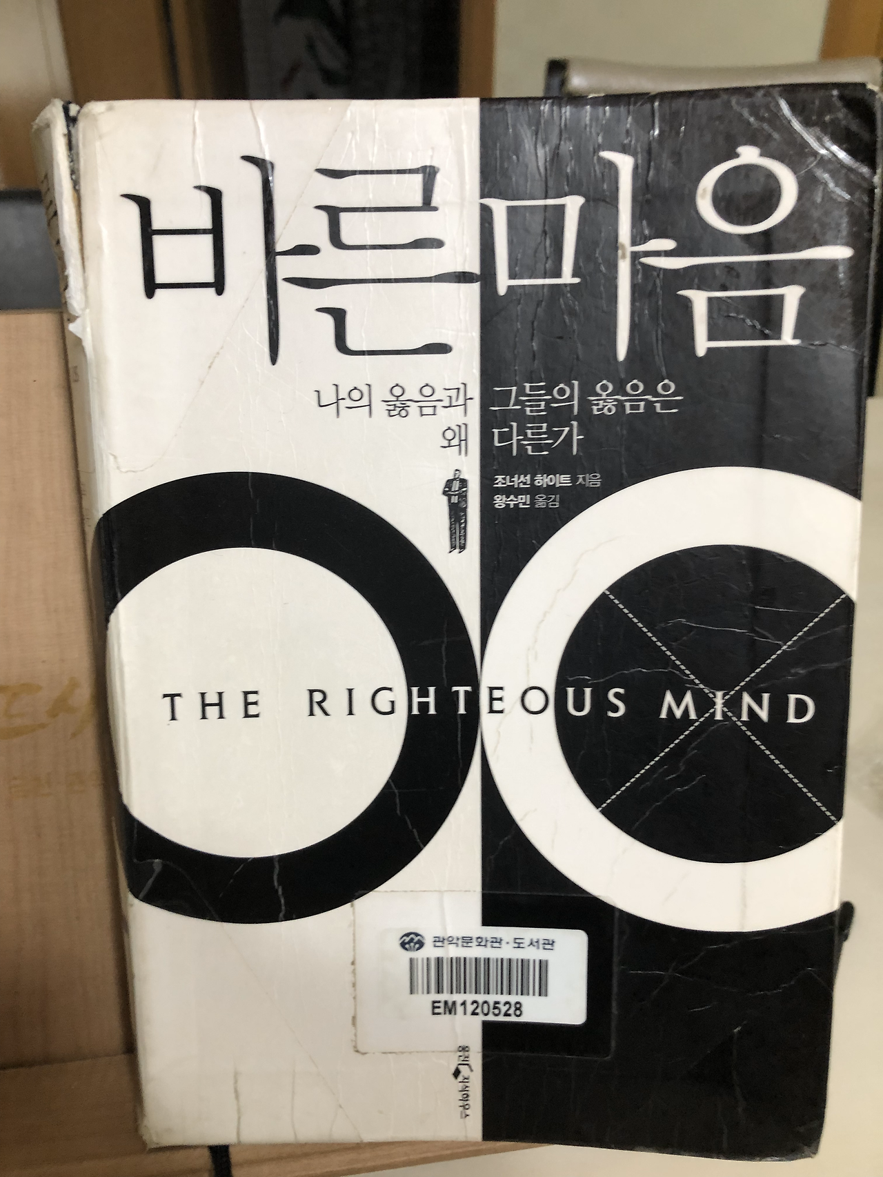조너선 하이트의 [바른 마음] - '인간은 합리적인 동물이 아니다'라고 주장했는데 이 책이 그 증거다. 진보와 보수는 서로를 이해하지 못하는데 중요시하는 가치가 다르기 때문이다. 인간은 기본적으로 이기적인데 가끔 이타적인 이유를 설명해준다.