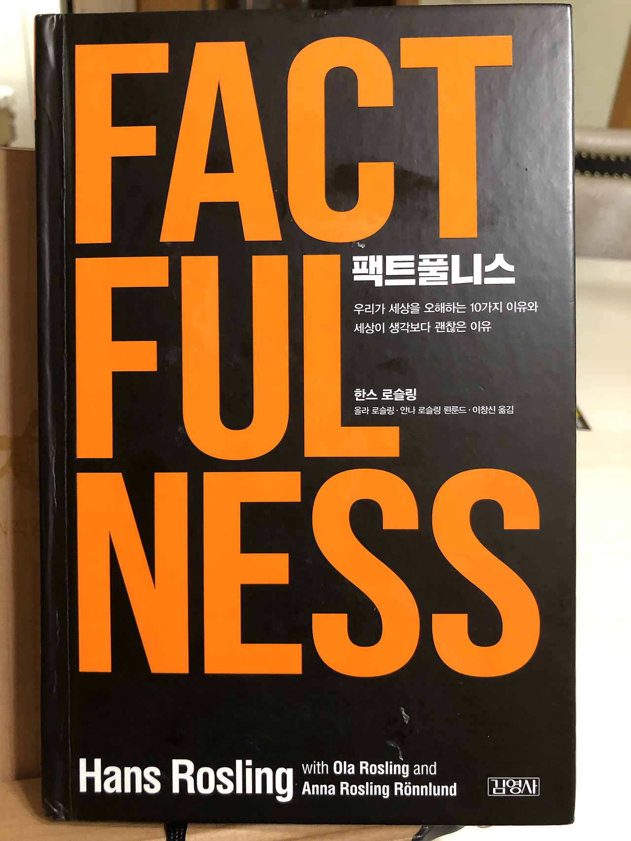 한스 로슬링의 [팩트풀니스] - 세상은 우리가 생각했던 것보다 더 좋아지고 있다. 다만 우리에게 그것을 오해하게 하는 본능이 있어서 잘 보지 못한다. 내가 얼마나 세상을 편견으로 보고 있는지 깨달음을 준다.
