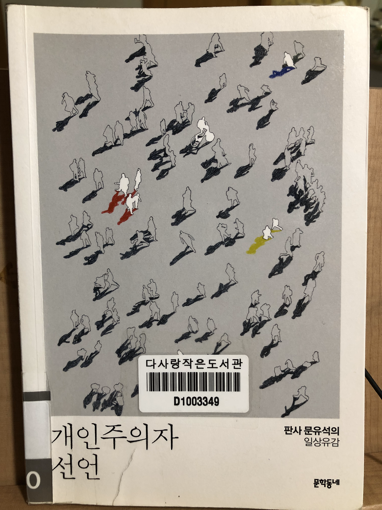 문유석 판사의 [개인주의자 선언] - 합리적 개인주의는 타인과의 협력과 연대를 중시한다. 왜냐면 나의 행복을 보장받기 위해서다. 그의 유쾌한 선언이 재밌다.