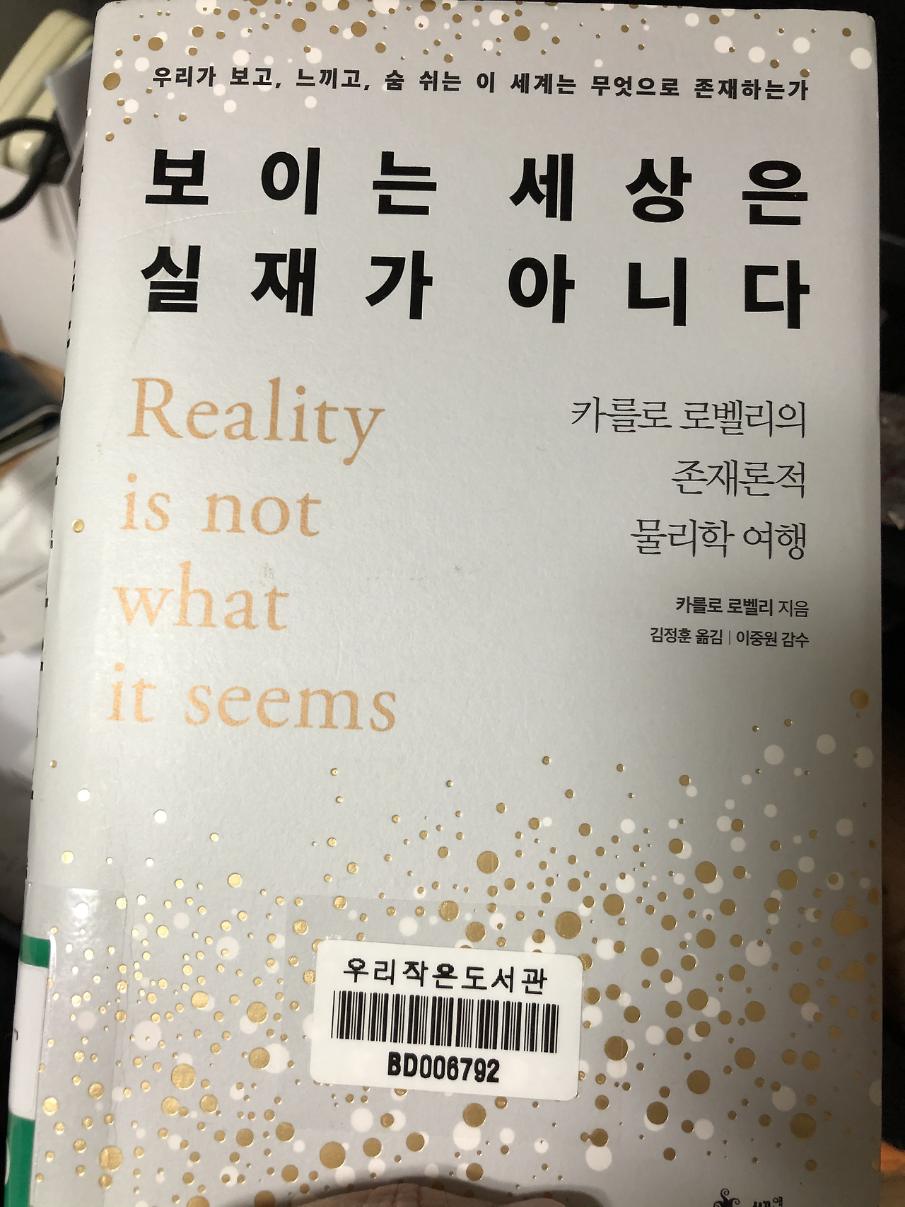 카를로 로벨리의 [보이는 세상은 실재가 아니다] - 시간도 없고 공간도 없다. 모든 것은 양자 중력장이 만들어낸 결과물이다. 결국 우리가 보는 시공은 가상이고 양자 중력장이 실재다. 최신 물리학 이론을 이렇게 쉽게 설명할 수 있다니 놀랍다.