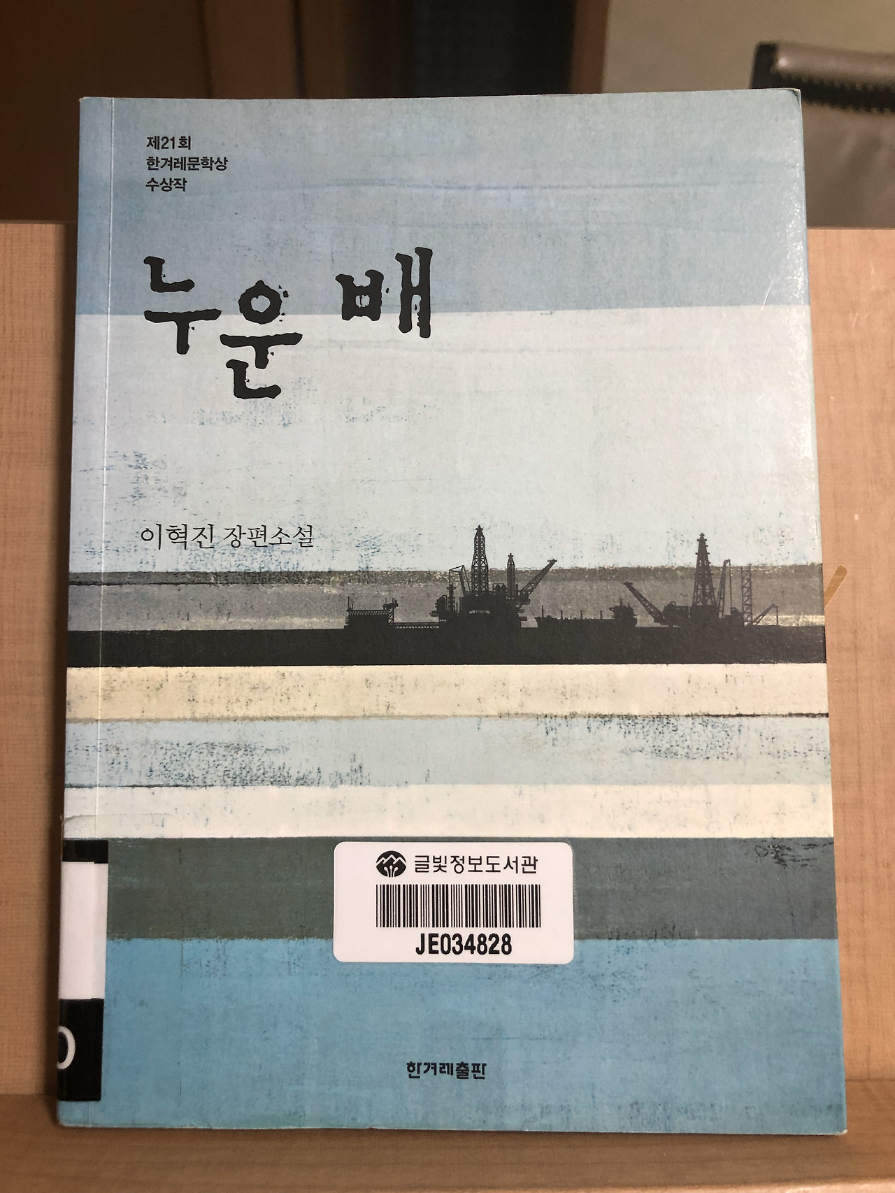 이혁진 작가의 소설 [누운 배] - 중국에 있는 한국 조선소에서 배가 쓰러지면서 일어나는 일을 다루고 있다. 회사 생활의 부조리에 대한 리얼한 보고서다. ‘월급을 받을수록 나는 젊음을 잃는다.'