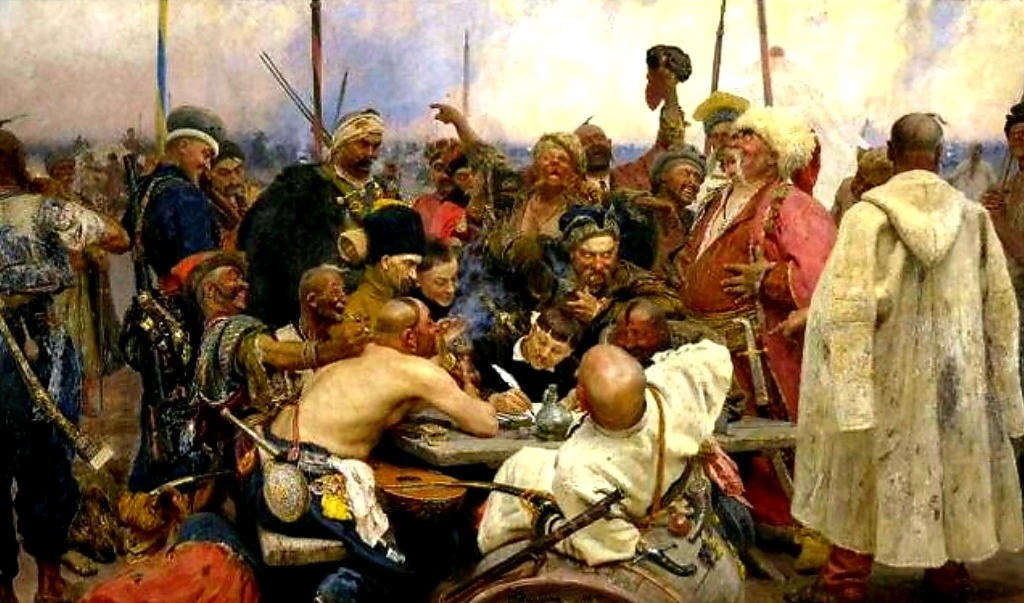 우크라이나의 주류 집단인 코사크를 표현한 <자포지아 코사크의 답신>, 일랴 레핀(1844~1930)