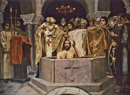 키이우 공국의 전성시대를 이끈 블라디미르 대공의 세례식 (출처, 위키피디아 )