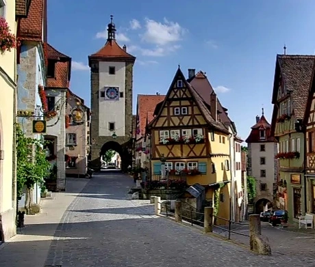 중세의 아침이 제 눈앞에 펼쳐져 있는 것이었습니다. 당시 유럽 배낭여행객의 필수품이었던 노란 표지의 가이드 북을 통해 도시에 대한 정보를 어느 정도 알고는 갔으나 이런 정경이 보일 줄은 몰랐습니다. 그 이전 가 본 유럽의 도시들 중에도 중세의 모습을 간직하고 있는 곳은 많았으나 로텐부르크는 그곳들과 달랐습니다. 순도 100프로 중세의모습만이 보였기에 그랬습니다. 제 눈앞엔 시원스레 펼쳐진 고색창연한 지붕의 행렬 끝에 성벽과 망루가 보이고 그 너머로 산과 하늘이 이어졌습니다. 제 눈 바로 아래 골목길엔 노새인지 당나귀인지 구별 안 가는 가축이 끄는 달구지가 정차해 있고, 그것을 몰고 온 마부가 식품점이 있는 1층에 신선한 야채를 납품하며 주인과 뭔 말인지 모를 독일어로 즐겁게 대화를 나누고 있었습니다.