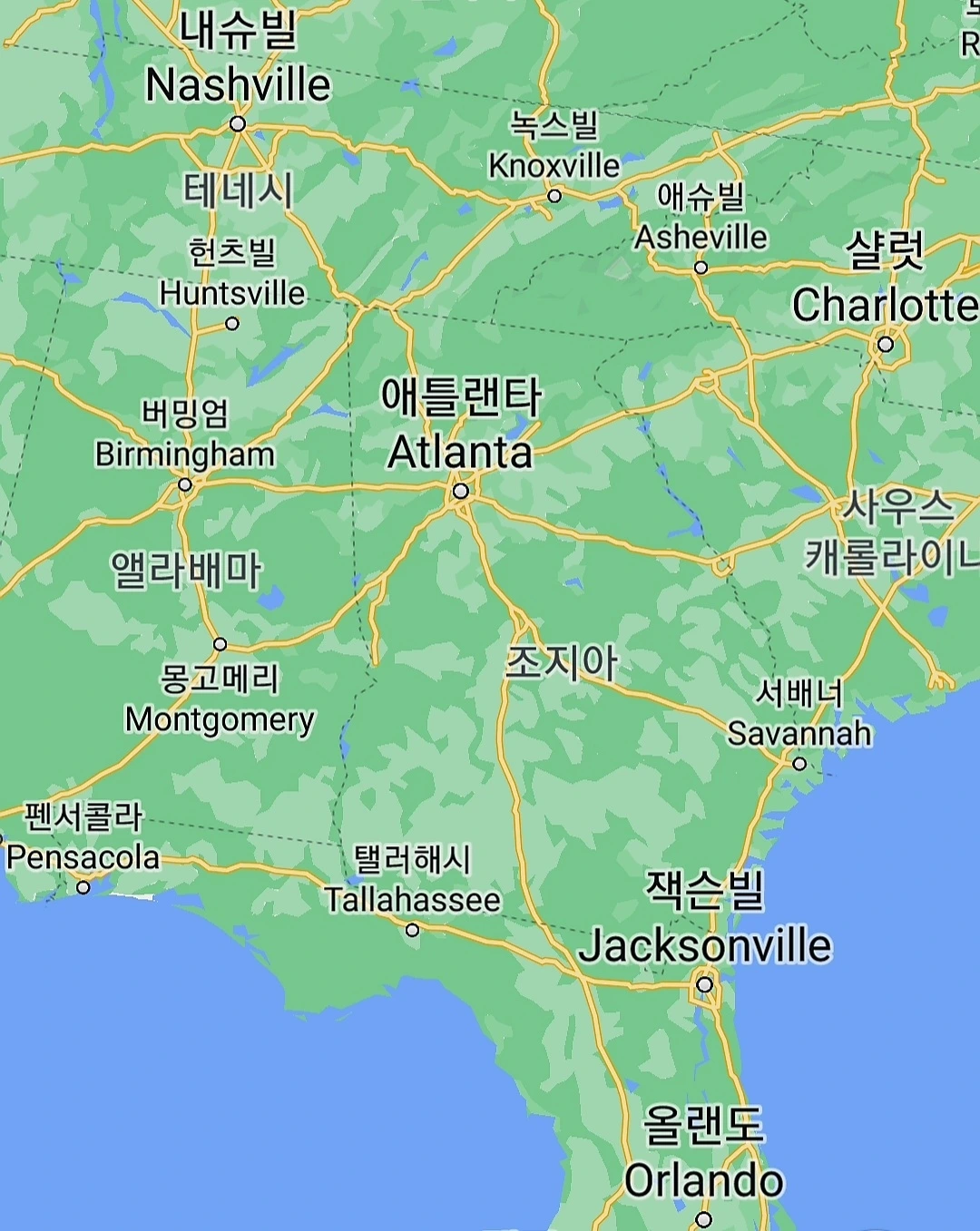 조지아주 애틀랜타 주변 남부 지도 (출처, 구글)