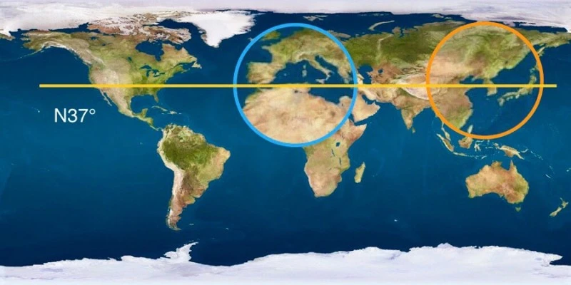 그러면 또 다음 도시들의 공통점은 무엇일까요? 서울, 도쿄, 베이징, 카불, 테헤란, 아테네, 리스본, 그리고 마드리드.. 우선 떠오르는 것은 대도시이며 해당 국가의 수도일 것입니다. 그리고 수도는 수도이되 이 글에서 원하는 답인 우리나라의 수도인 서울과 비슷한 위도(latitude)에 걸쳐있는 도시들입니다. 이들은 지도를 펼쳐 놓고 서울부터 우에서 좌로 주욱 훑어가면 거의 같은 선상에 걸려있는 도시들입니다. 북위 37도인 서울을 기준으로 위아래로 근접한 북위 35도~40도에 위치해있습니다.