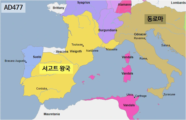 5세기 말 게르만 민족 이동 시 이베리아 반도를 차지한 서고트족