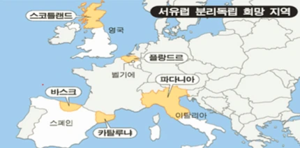 유럽의 분리독립 가능 국가와 그 지역