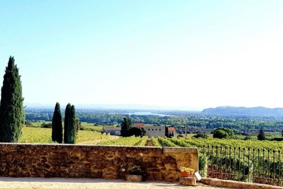 멀리 론강이 보이는 샤또 네프 드 빠프에 소재한 와이너리