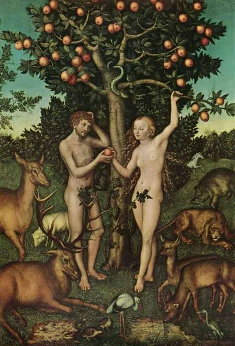 뱀의 유혹으로 선악과를 먹으려 하는 '아담과 이브', 루카스 크라나흐, 1526