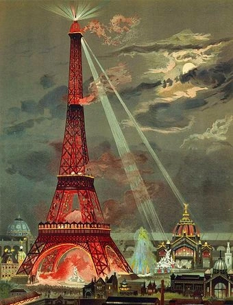 파리 엑스포를 밝히는 에펠탑의 화려한 야간 조명 쇼, 1889, (출처, 요다위키)