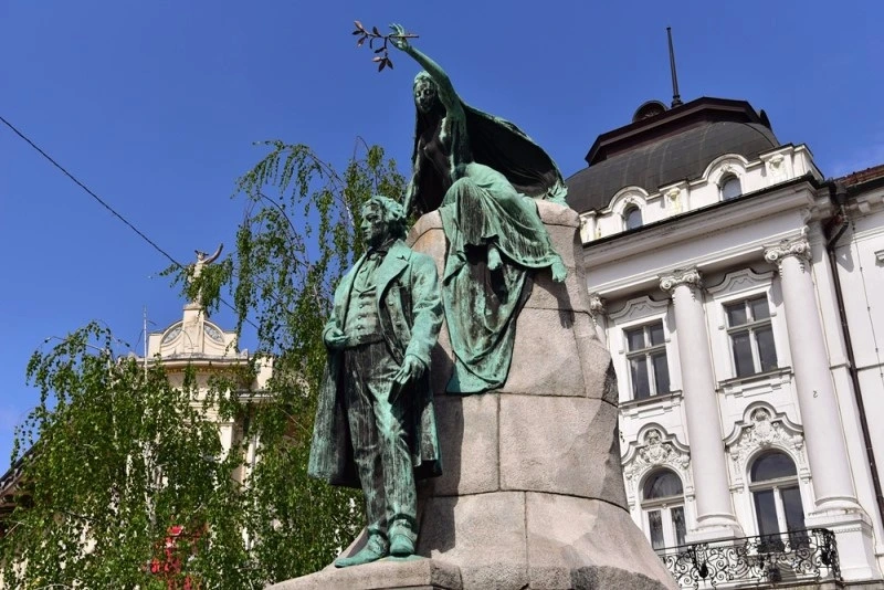 류블랴나(Ljubljana)는 용의 도시이지만 사랑의 도시이기도 합니다. 도시 이름에 대놓고 그 사랑이 나와 있습니다. 슬로베니아어로 영어의 love는 ljubezen인데 류블랴나는 보듯이 그 어근을 가지고 있습니다. '사랑의 지대'라고나 할까요? 그래서인가 이 도시엔 가슴 아픈 사랑의 스토리가 내려오고 있습니다. 프란체 프레셰렌(France Prešeren)이라는 변호사이자 낭만주의 시인의 러브 스토리입니다. 그는 1844년 오늘날 슬로베니아의 국가가 된 시를 쓴 인물입니다. 프랑스혁명에 영향을 받은 그가 <축배(A Toast)>라는 8절의 연시를 썼는데 그중 7절이 오늘날 슬로베니아 국가의 가사가 되었습니다. 당시 그의 조국 슬로베니아가 오스트리아-헝가리 제국의 지배를 받아서 그런 시가 나올 수 있었습니다. <축배>는 함께 손잡고 나아가 싸워 평화를 이루고 모두 축배를 들자는 내용입니다.