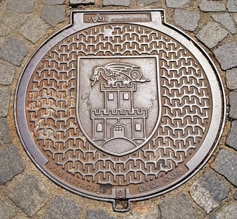 류블랴나 시내 바닥 맨홀 뚜껑 위에 새겨진 용