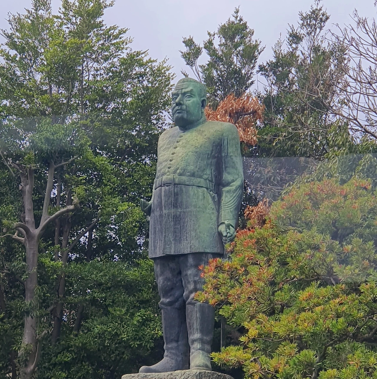 가고시마 시에서 버스를 타고 이동 중 차창 밖으로 보인 메이지 유신의 실력자 사이고 다카모리 (1828~1877)
