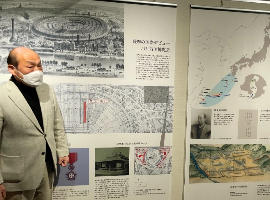 15대 심수관이 직접 우리 일행에게 전시물을 설명하는 중. 심수관요 박물관, 2023. 2. 11