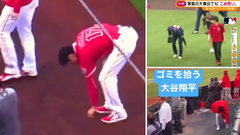 메이저리그에서 경기와 연습 도중 쓰레기를 줍는 오타니 쇼헤이의 모습들